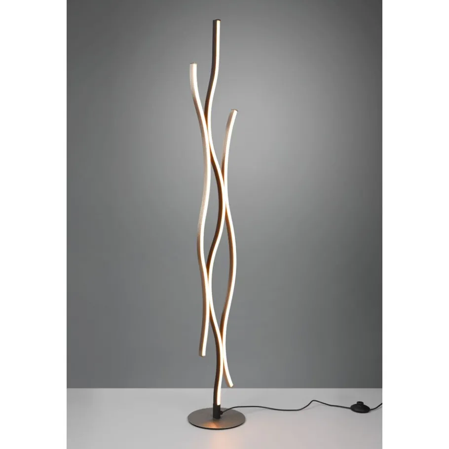 De mooie gebogen vorm van de staande lamp BLAZE wordt een echte blikvanger naast de bank of in de gang. De moderne en elegante lamp heeft dankzij de voetschakelaar een geïntegreerde sensordimmer, waardoor het licht niveauloos gedimd kan worden. Daarnaast kan de lichtkleur in niveaus worden aangepast om een bijzondere lichtbeleving te creëren. Dankzij de bijkomende geïntegreerde geheugenfunctie wordt het laatst ingestelde lichtscenario automatisch hernomen. Het design van de lamp wordt afgerond door de eenvoudige kleurencombinatie van geborsteld aluminium en mat zwart. Daarnaast beschikt de lamp over een moderne ledtechnologie die zich onderscheidt met een hoge lichtkwaliteit en energie-efficiëntie. In vergelijking met gewone halogeenlampen kan tot 80% bespaard worden op de energiekosten. Bovendien profiteert u bij ledlichtbronnen van een lange levensduur, een geringe warmteontwikkeling en spaart tegelijkertijd het milieu.