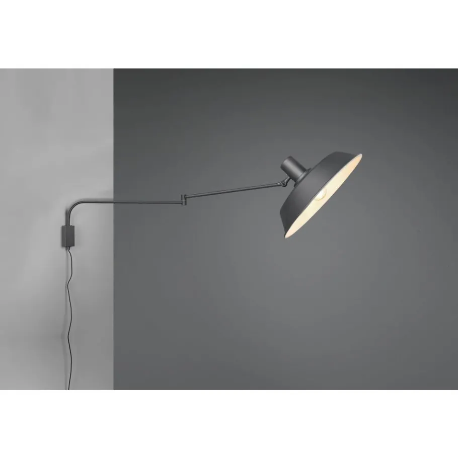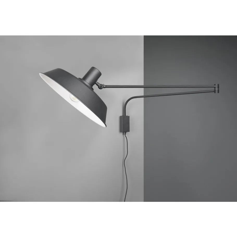 De filigrane wandlamp BOLDER is modern en efficiënt tegelijkertijd. Zowel het gestel, als de lampenkap in industriedesign zijn zwenkbaar, zodat de lichtpositie flexibel en individueel aangepast kan worden. De BOLDER reikt tot 150 cm ver en kan als leeslamp achter de sofa of als alternatieve verlichting boven de eettafel en in de keuken gebruikt worden. De muurlamp is uitgerust met een trekschakelaar en heeft daarom geen direct muuraansluiting nodig. Door het moderne kleurschema in mat zwart past de lamp zich probleemloos aan voor handen zijnd interieur aan. Voor een energiebesparende verlichting is het gebruik van een ledlichtbron aanbevolen. Deze zijn een optimaal alternatief voor gewone halogeenlampen en staan voor een hoge lichtkwaliteit en een energiebesparing van tot 80%. Bovendien profiteert u bij ledlichtbronnen van een lange levensduur, een geringe warmteontwikkeling en spaart tegelijkertijd het milieu.