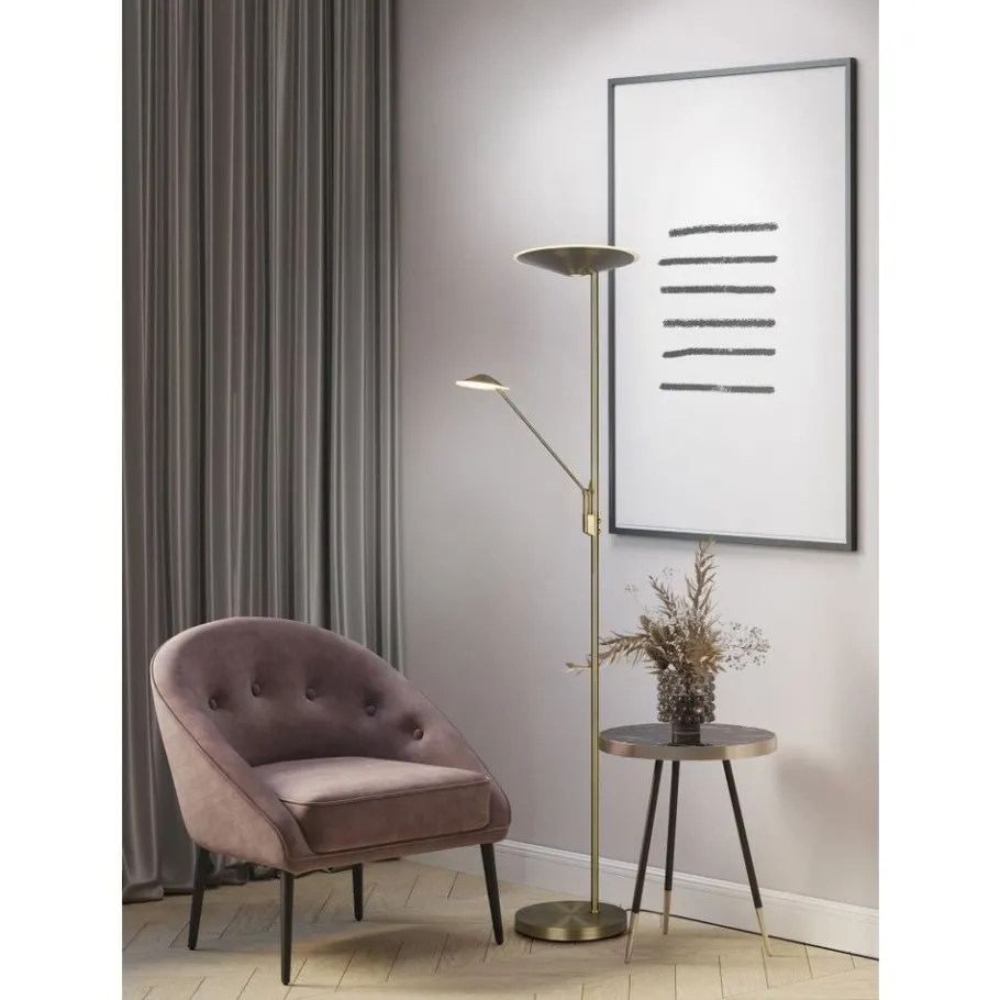 De moderne schijnwerper BRANTFORD overtuigt met zijn praktische functies en vindt zijn optimale plaats naast de bureautafel of bank. De helderheid en lichtkleur kunnen eenvoudig worden gedimd en aangepast via een geïntegreerde sensordimmer. De hoofdlichtbron kan ook los van de leesarm worden bediend, zodat u individueel het licht kunt gebruiken dat u nodig hebt. Dankzij de geïntegreerde geheugenfunctie wordt het laatst ingestelde lichtscenario automatisch hernomen. In klassiek oud messing kan de lamp gecombineerd worden met vele inrichtingsstijlen. Daarnaast beschikt de lamp over een moderne ledtechnologie die zich onderscheidt met een hoge lichtkwaliteit en energie-efficiëntie. In vergelijking met gewone halogeenlampen kan tot 80% op de energiekosten worden bespaard. Bovendien profiteert u met ledlichtbronnen van een lange levensduur, lage warmteontwikkeling en beschermt u tegelijkertijd het milieu.