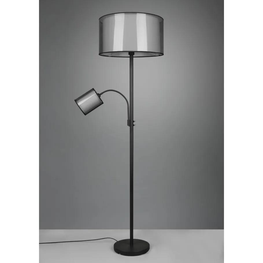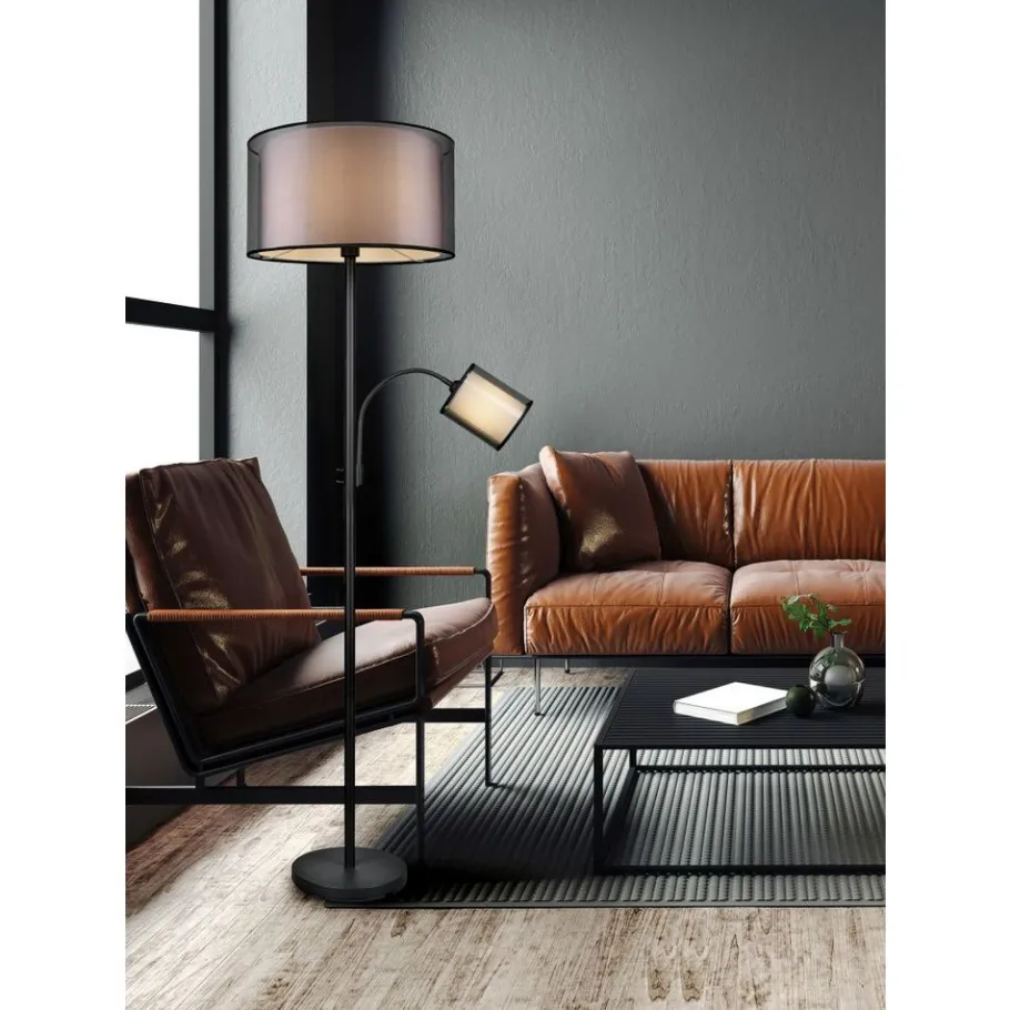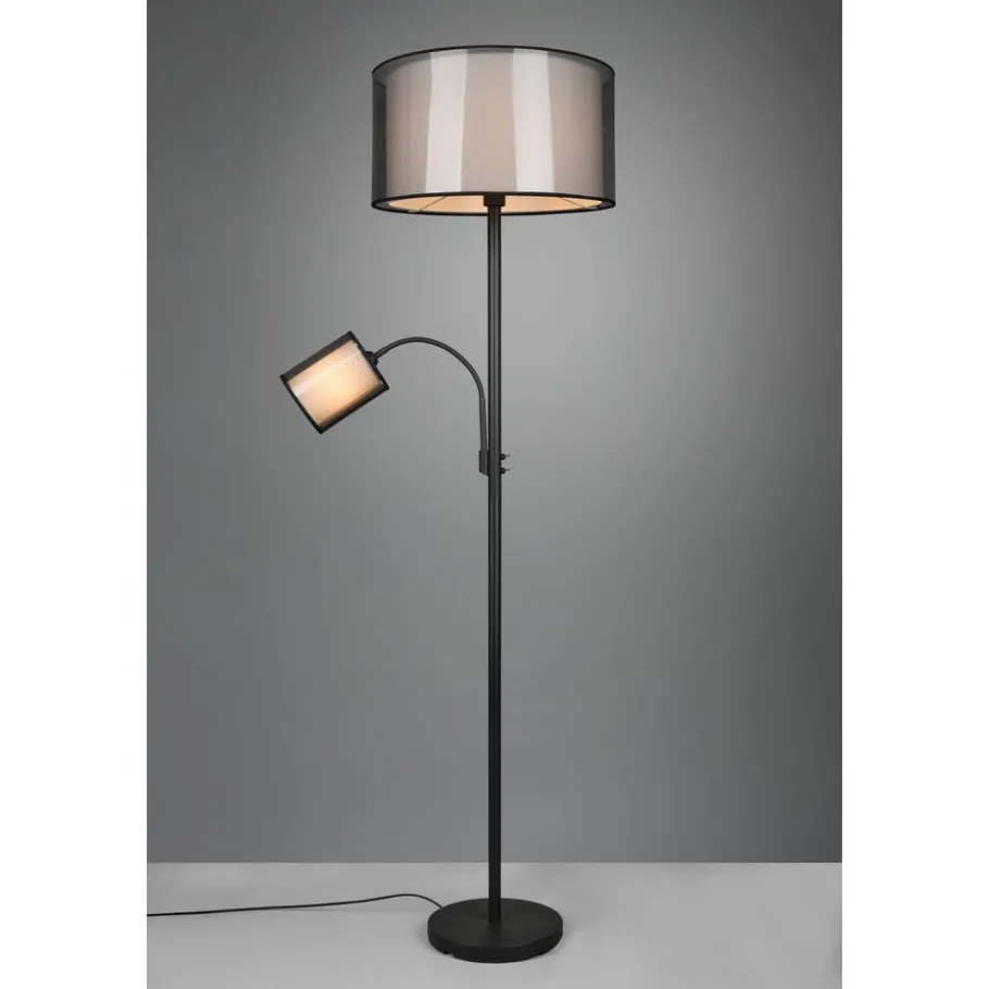 Met hun stoffen kappen zijn de lampen van de serie BURTON het toonbeeld van behaaglijkheid. Het huiselijke licht, dat door de twee verschillend gekleurde kappen een gezellige sfeer schept, zet bijzondere lichtaccenten. De staande lamp, die een mooi plaatsje vindt naast de bank of in de hal, kan flexibel worden bediend via een schakelaar. De hoofdlichtbron en de leesarm kunnen ook afzonderlijk worden gebruikt via twee aparte schakelaars. De moderne combinatie van een witte stoffen binnenkap en een transparante zwarte kunststof buitenkap werkt individueel en verfrissend en kan op verschillende manieren in moderne woonstijlen worden geïntegreerd. Voor een energiebesparende verlichting is het gebruik van een ledlichtbron aanbevolen. Deze zijn een optimaal alternatief voor gewone halogeenlampen en staan voor een hoge lichtkwaliteit en een energiebesparing van tot 80%. Bovendien profiteert u bij ledlichtbronnen van een lange levensduur, een geringe warmteontwikkeling en spaart tegelijkertijd het milieu.