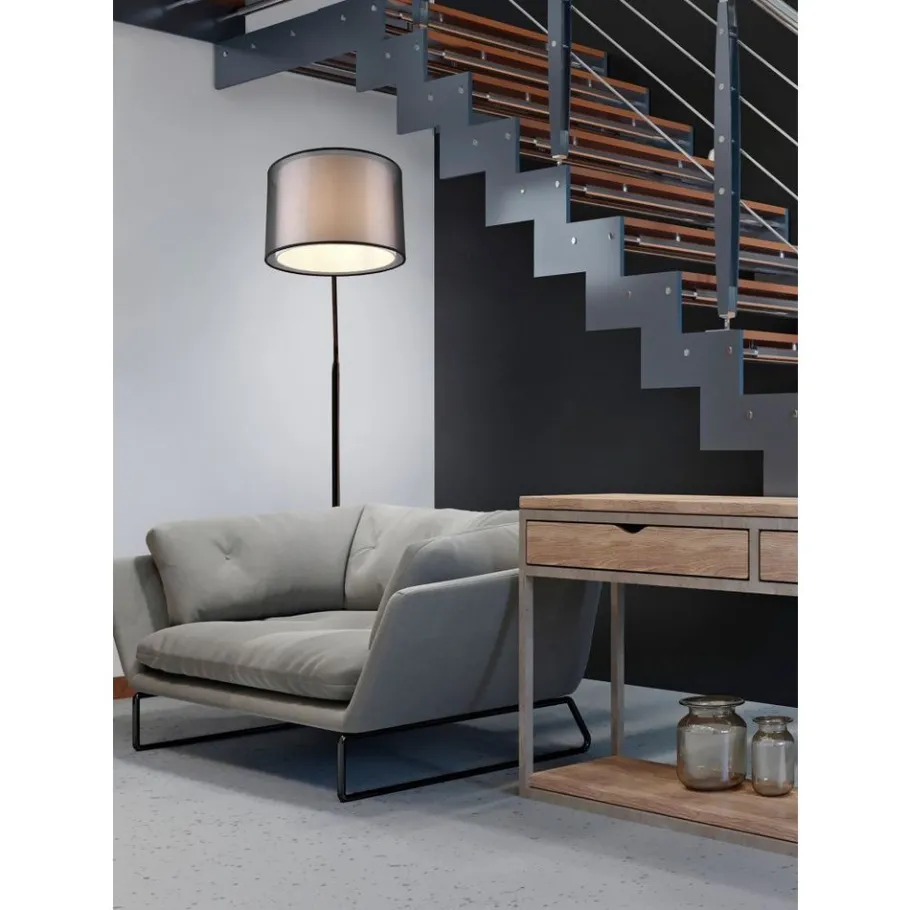 Met hun stoffen kappen zijn de lampen van de serie BURTON het toonbeeld van behaaglijkheid. Het huiselijke licht, dat door de twee verschillend gekleurde kappen een gezellige sfeer schept, zet bijzondere lichtaccenten. De gebogen staande lamp, die een mooi plaatsje vindt naast de bank, kan flexibel worden bediend via een voetschakelaar. De moderne combinatie van een witte stoffen binnenkap en een transparante zwarte kunststof buitenkap werkt individueel en verfrissend en kan op verschillende manieren in moderne woonstijlen worden geïntegreerd. Voor een energiebesparende verlichting is het gebruik van een ledlichtbron aanbevolen. Deze zijn een optimaal alternatief voor gewone halogeenlampen en staan voor een hoge lichtkwaliteit en een energiebesparing van tot 80%. Bovendien profiteert u bij ledlichtbronnen van een lange levensduur, een geringe warmteontwikkeling en spaart tegelijkertijd het milieu.