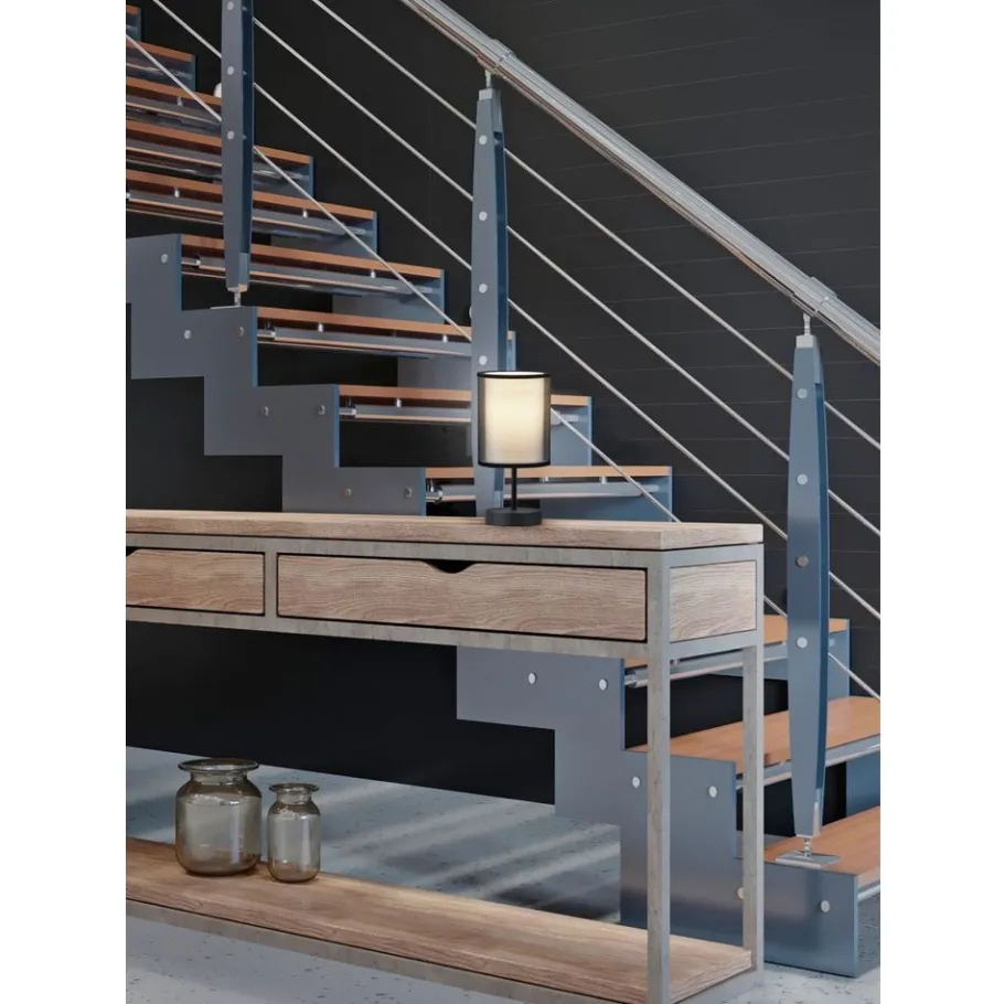 Met hun stoffen kappen zijn de lampen van de serie BURTON het toonbeeld van behaaglijkheid. Het huiselijke licht, dat door de twee verschillend gekleurde kappen een gezellige sfeer schept, zet bijzondere lichtaccenten. De tafellamp, die een mooi plaatsje vindt op een nachtkastje of ladekast, kan flexibel worden bediend via een snoerschakelaar. De moderne combinatie van een witte stoffen binnenkap en een transparante zwarte kunststof buitenkap werkt individueel en verfrissend en kan op verschillende manieren in moderne woonstijlen worden geïntegreerd. Voor een energiebesparende verlichting is het gebruik van een ledlichtbron aanbevolen. Deze zijn een optimaal alternatief voor gewone halogeenlampen en staan voor een hoge lichtkwaliteit en een energiebesparing van tot 80%. Bovendien profiteert u bij ledlichtbronnen van een lange levensduur, een geringe warmteontwikkeling en spaart tegelijkertijd het milieu.