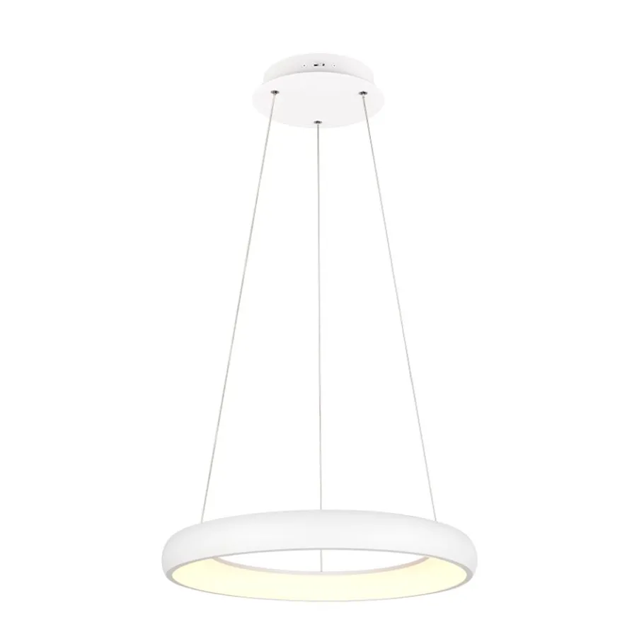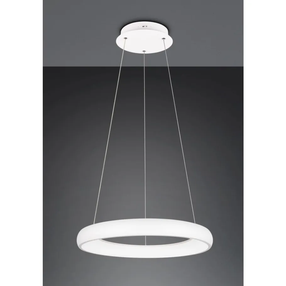 Helderheid en functionaliteit gecombineerd – de CARDONA hanglamp maakt indruk met haar opvallende ontwerp, dat wordt gekenmerkt door een zwevende ring. Deze elegante ring lijkt letterlijk in de ruimte te zweven en trekt ieders aandacht. De armatuur is ideaal voor moderne woonkamers, kantoren of eetkamers en zorgt voor een gelijkmatige, niet-verblindende verlichting dankzij de subtiele lichtbron in de ring, waardoor een aangename sfeer wordt gecreëerd. De helderheid kan in drie niveaus worden geregeld met een conventionele lichtschakelaar en de lichtkleur kan direct worden aangepast met een schakelaar op het armatuur. Het witte matte oppervlak geeft elke kamer een tijdloze elegantie en een modern tintje. De armatuur is ook voorzien van moderne LED-technologie, die wordt gekenmerkt door een hoge lichtkwaliteit en energie-efficiëntie. Vergeleken met conventionele halogeenlichtbronnen kan tot 80% op de energiekosten worden bespaard. LED lichtbronnen hebben ook een lange levensduur, produceren minder warmte en beschermen het milieu.