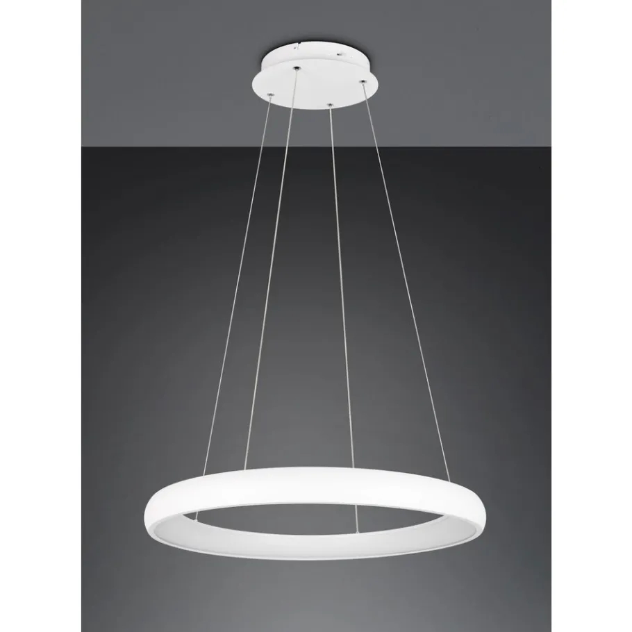Helderheid en functionaliteit gecombineerd – de CARDONA hanglamp maakt indruk met haar opvallende ontwerp, dat wordt gekenmerkt door een zwevende ring. Deze elegante ring lijkt letterlijk in de ruimte te zweven en trekt ieders aandacht. De armatuur is ideaal voor moderne woonkamers, kantoren of eetkamers en zorgt voor een gelijkmatige, niet-verblindende verlichting dankzij de subtiele lichtbron in de ring, waardoor een aangename sfeer wordt gecreëerd. De helderheid kan in drie niveaus worden geregeld met een conventionele lichtschakelaar en de lichtkleur kan direct worden aangepast met een schakelaar op het armatuur. Het witte matte oppervlak geeft elke kamer een tijdloze elegantie en een modern tintje. De armatuur is ook voorzien van moderne LED-technologie, die wordt gekenmerkt door een hoge lichtkwaliteit en energie-efficiëntie. Vergeleken met conventionele halogeenlichtbronnen kan tot 80% op de energiekosten worden bespaard. LED lichtbronnen hebben ook een lange levensduur, produceren minder warmte en beschermen het milieu.