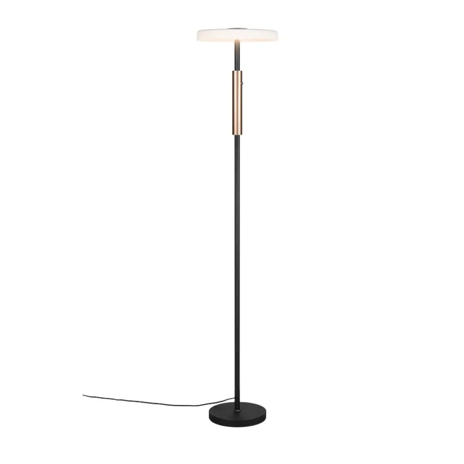 De CELESTE vloerlamp combineert stijlvolle elegantie met hoge functionaliteit. Het unieke ontwerp van metaal en glas creëert bijzondere accenten in elke kamer. De futuristisch vormgegeven glazen kap fascineert door het matte oppervlak, dat zorgt voor adembenemende lichtspelingen en een warme, uitnodigende sfeer. Naast de bank of in de gang – CELESTE zorgt altijd voor de perfecte verlichting. Dankzij de geïntegreerde sensordimmer kun je de lichtsterkte traploos aanpassen aan je behoeften. De stijlvolle combinatie van metaal in koffie en mat zwart en wit glas past naadloos in zowel moderne als klassieke inrichtingsstijlen en laat de lamp stralen in elke omgeving. De armatuur is ook voorzien van moderne LED-technologie, die wordt gekenmerkt door een hoge lichtkwaliteit en energie-efficiëntie. Vergeleken met conventionele halogeenlichtbronnen kan tot 80% op de energiekosten worden bespaard. LED lichtbronnen hebben ook een lange levensduur, produceren minder warmte en beschermen het milieu.