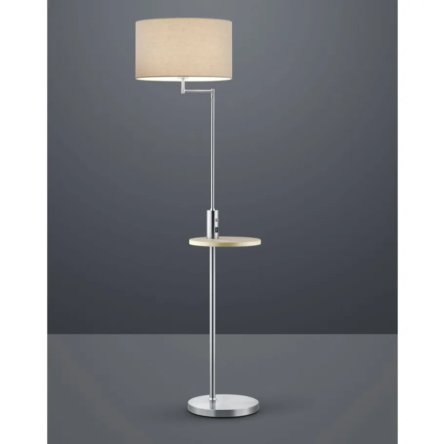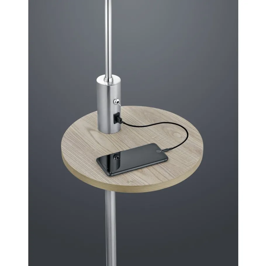 De moderne CLAAS vloerlamp is perfect om in de gang of naast de bank te plaatsen en creëert lichtaccenten die je woonruimte een gezellige sfeer geven. De vloerlamp heeft ook een klein houten tafeltje en een USB-poort met oplaadfunctie, waardoor hij ideaal is om bijvoorbeeld je mobiele telefoon naast de bank te leggen en tegelijkertijd op te laden. De praktische lamp is 160 cm hoog en heeft een projectie van 40 cm. De combinatie van mat nikkel en de grijze stoffen kap, samen met de houten tafel, geeft de lamp een moderne uitstraling. Het gebruik van LED lichtbronnen wordt aanbevolen voor energiebesparende verlichting. Deze vormen een ideaal alternatief voor conventionele halogeenlichtbronnen en bieden een hoge lichtkwaliteit en energiebesparingen tot 80%. Met LED lichtbronnen profiteert u ook van een lange levensduur en een lage warmteontwikkeling, terwijl het milieu wordt beschermd.
