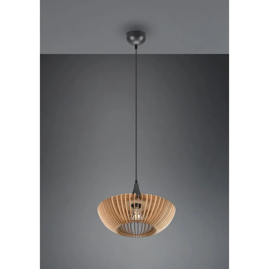 De hanglamp COLINO straalt gratie en elegantie uit dankzij de kap van houten lamellen. Het opvallend gebogen design zorgt voor een warme en gezellige lichtsfeer en verrijkt uw kamers en inrichtingsstijl op een smaakvolle manier. Het naturelle hout in combinatie met metaal in antraciet oogt harmonieus en zet moderne accenten. Voor een energiebesparende verlichting is het gebruik van een ledlichtbron aanbevolen. Deze zijn een optimaal alternatief voor gewone halogeenlampen en staan voor een hoge lichtkwaliteit en een energiebesparing van tot 80%. Bovendien profiteert u bij ledlichtbronnen van een lange levensduur, een geringe warmteontwikkeling en spaart tegelijkertijd het milieu.