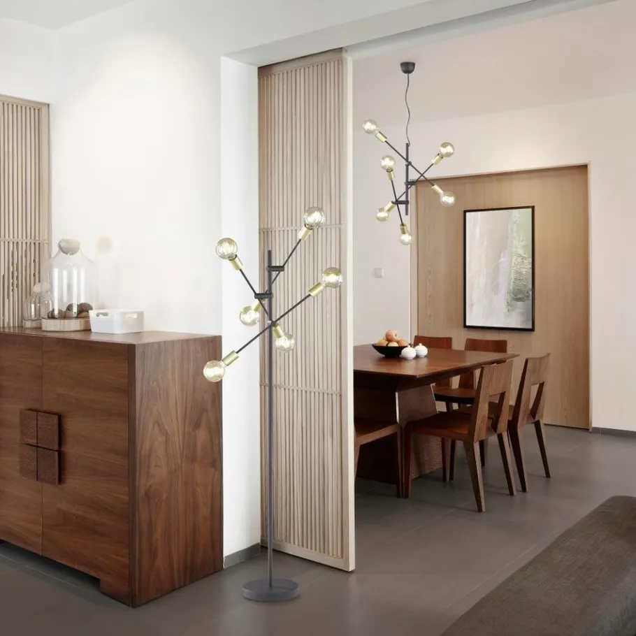 Onconventioneel, creatief en designgericht. Minimalistische armaturen zoals die in de CROSS-serie zetten spannende accenten en zetten ruimtes in het juiste licht. De keuze van kleuren en vormen creëert contrasten – slim gecombineerd creëren ze een gezellig component en een stijlvolle sfeer. De lamp is een smaakvolle toevoeging aan bijna elk interieur en kan in de woonkamer of entree worden geplaatst. Omdat je direct zicht hebt op de lichtbronnen en ze niet worden afgedekt door een lampenkap, raden we aan om een gloeilamp te gebruiken. Dit geeft het een harmonieuze uitstraling en maakt het totaalplaatje compleet. Het eenvoudige, rechtlijnige metalen frame in matzwart met bronskleurige lamphouders zorgt voor een harmonieuze totale look. Voor een energiebesparende verlichting is het gebruik van een ledlichtbron aanbevolen. Deze zijn een optimaal alternatief voor gewone halogeenlampen en staan voor een hoge lichtkwaliteit en een energiebesparing van tot 80%. Bovendien profiteert u bij ledlichtbronnen van een lange levensduur, een geringe warmteontwikkeling en spaart tegelijkertijd het milieu.