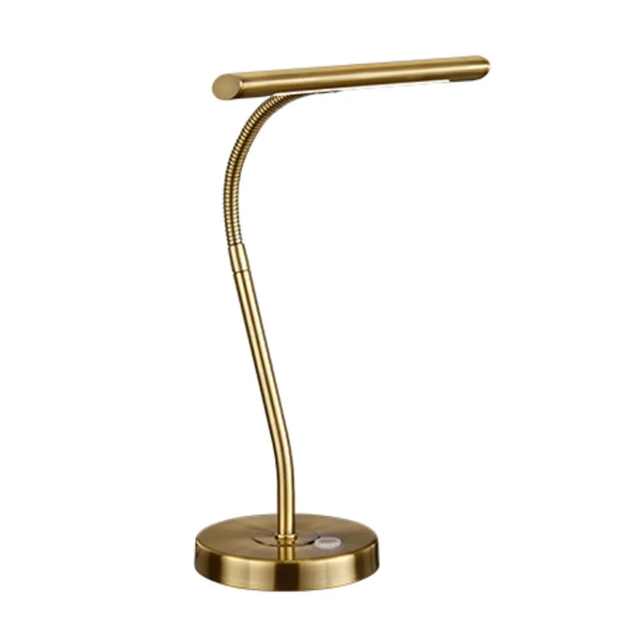 De CURTIS tafellamp is over de hele linie een blikvanger. Het aantrekkelijke ontwerp en de verstelbare flexibele arm maken dit armatuur tot een echt sieraad. Deze arm kan naar wens worden versteld en verlicht het gewenste gebied uitgebreid. De armatuur kan met de 4-voudige touchdimmer worden aangepast aan individuele eisen of lichtomstandigheden en blijft tegelijkertijd een smaakvol decoratief element. De matte antiekmessingkleur geeft de CURTIS armatuur een elegante uitstraling. Het kan worden geïntegreerd in zowel moderne als klassieke inrichtingsstijlen. Daarnaast beschikt de lamp over een moderne ledtechnologie die zich onderscheidt met een hoge lichtkwaliteit en energie-efficiëntie. In vergelijking met gewone halogeenlampen kan tot 80% bespaard worden op de energiekosten. Bovendien hebben ledlampen een lange levensduur, produceren minder warmte en zijn milieuvriendelijk.