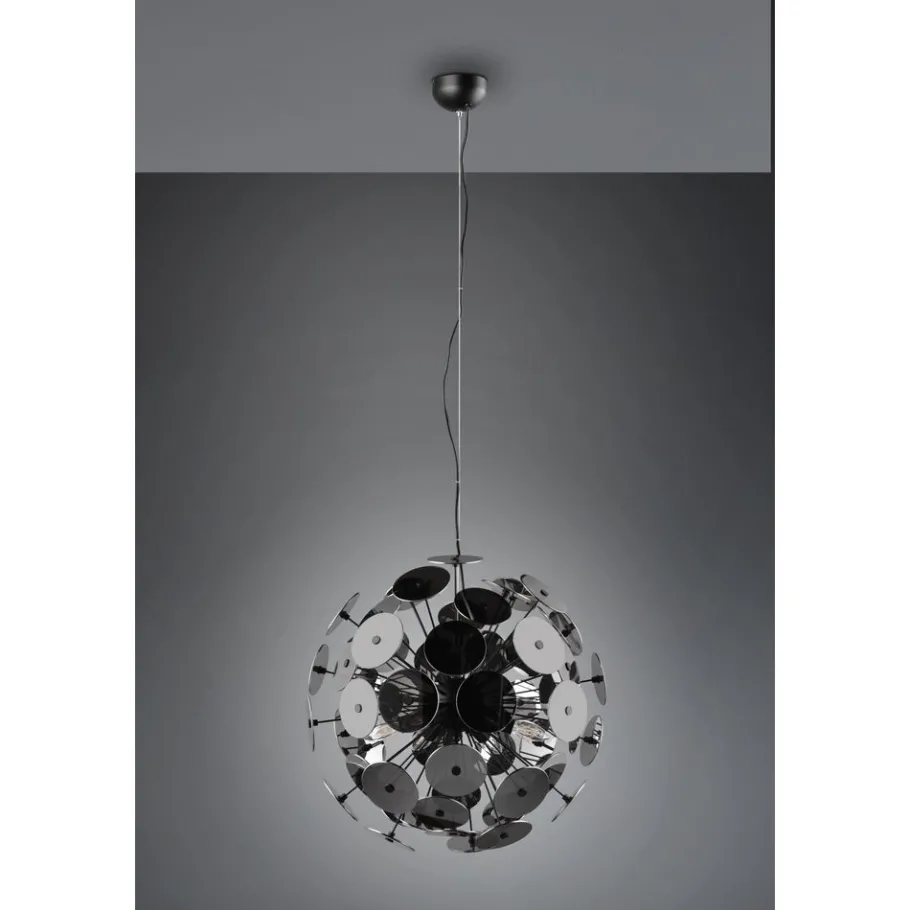 Een modern accessoire voor je woon- of slaapkamer. Het opvallende ontwerp van de hanglamp is gegarandeerd een echte blikvanger! Als hij aanstaat, biedt hij een geslaagd samenspel tussen licht en schaduw. Met een beetje fantasie doet de lamp denken aan een paardenbloem en past daarom perfect in een creatieve interieurstijl. Terwijl de glazen ruiten het licht weerkaatsen in een chroomdampcoating, vormt het matzwarte metaal een rijk genuanceerd kleurcontrast met het glas. Het gebruik van LED lichtbronnen wordt aanbevolen voor energiebesparende verlichting. Deze vormen een ideaal alternatief voor conventionele halogeenlichtbronnen en bieden een hoge lichtkwaliteit en energiebesparingen tot 80%. Met LED lichtbronnen profiteert u ook van een lange levensduur en een lage warmteontwikkeling, terwijl het milieu wordt beschermd.