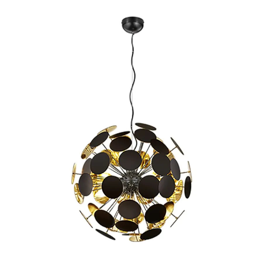 Een modern accessoire voor je woon- of slaapkamer. Het opvallende ontwerp van de hanglamp is gegarandeerd een echte blikvanger! Als hij aanstaat, biedt hij een geslaagd samenspel tussen design en lampenkap. Met een beetje fantasie doet de lamp denken aan een paardenbloem en past daarom perfect in een creatieve interieurstijl. De lamp heeft een hanglengte van 150 cm en een diameter van 54 cm. Terwijl de kunststof ruiten aan de buitenkant matzwart zijn, glanst de binnenkant van de ruiten in goud. Deze kleurencombinatie creëert een genuanceerde verlichtingssfeer in de kamer. Voor een energiebesparende verlichting is het gebruik van een ledlichtbron aanbevolen. Deze zijn een optimaal alternatief voor gewone halogeenlampen en staan voor een hoge lichtkwaliteit en een energiebesparing van tot 80%. Bovendien profiteert u bij ledlichtbronnen van een lange levensduur, een geringe warmteontwikkeling en spaart tegelijkertijd het milieu.