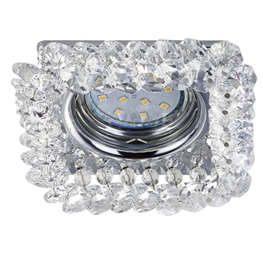 Het geheim van TRIO inbouwarmaturen is: tijdloos.flexibel.designgericht. Met de juiste inbouwarmaturen kunnen stijlvolle accenten worden gezet en kan een sfeervolle ambiance worden gecreëerd. De DOLOMITE inbouwspot kan op verschillende manieren worden gebruikt – als basisverlichting of om bepaalde zones gericht te accentueren. De lichtbron is onderling verwisselbaar, zodat u uw persoonlijke favoriet kunt kiezen uit schakelbare en dimbare lichtbronnen voor vlak of gericht licht. De armatuur maakt indruk met haar kristallen glazen kap, die ieders aandacht trekt. De hoekige DOLOMITE inbouwspot meet 10 x 10 cm en vereist een plafonduitsparing van 60 mm en een inbouwdiepte van minstens 100 mm. Het chromen kleurenschema met de kristallen ophanging past perfect bij moderne en klassieke inrichtingsconcepten. Het gebruik van LED lichtbronnen wordt aanbevolen voor energiebesparende verlichting. Deze vormen een ideaal alternatief voor conventionele halogeenlichtbronnen en bieden een hoge lichtkwaliteit en energiebesparingen tot 80%. Met LED lichtbronnen profiteert u ook van een lange levensduur en een lage warmteontwikkeling, terwijl het milieu wordt beschermd.