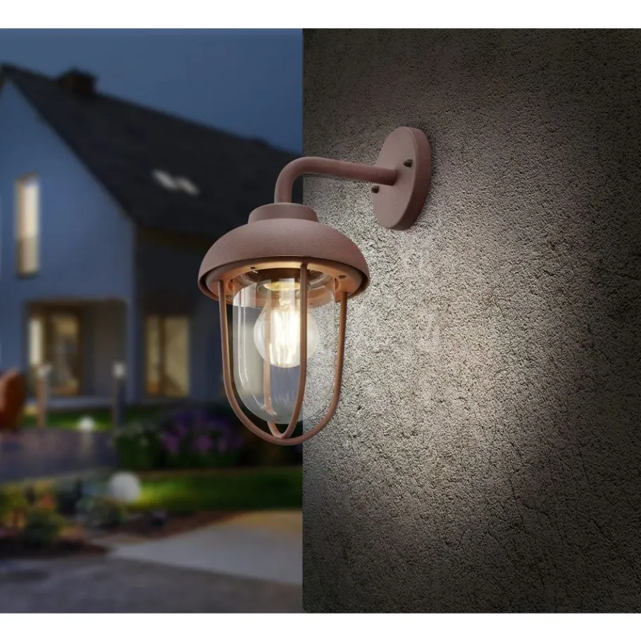 Decoratieve tuinverlichting met de DUERO vintage buitenlamp. Of je nu op het terras of bij de ingang vertoeft, de wandlamp met haar vintage look begeleidt je niet alleen in het donkere seizoen, maar ook op lange zomeravonden. Dankzij de IP44-beschermingsgraad is de wandlamp met een hoogte van 32 cm en een breedte van 18 cm ideaal om je buitenruimte te verlichten. Het roestkleurige ontwerp in combinatie met de transparante glazen kap kan op verschillende manieren worden gecombineerd en zorgt voor een decoratief designelement dat je huis opfleurt. Voor een energiebesparende verlichting is het gebruik van een ledlichtbron aanbevolen. Deze zijn een optimaal alternatief voor gewone halogeenlampen en staan voor een hoge lichtkwaliteit en een energiebesparing van tot 80%. Bovendien profiteert u bij ledlichtbronnen van een lange levensduur, een geringe warmteontwikkeling en spaart tegelijkertijd het milieu.