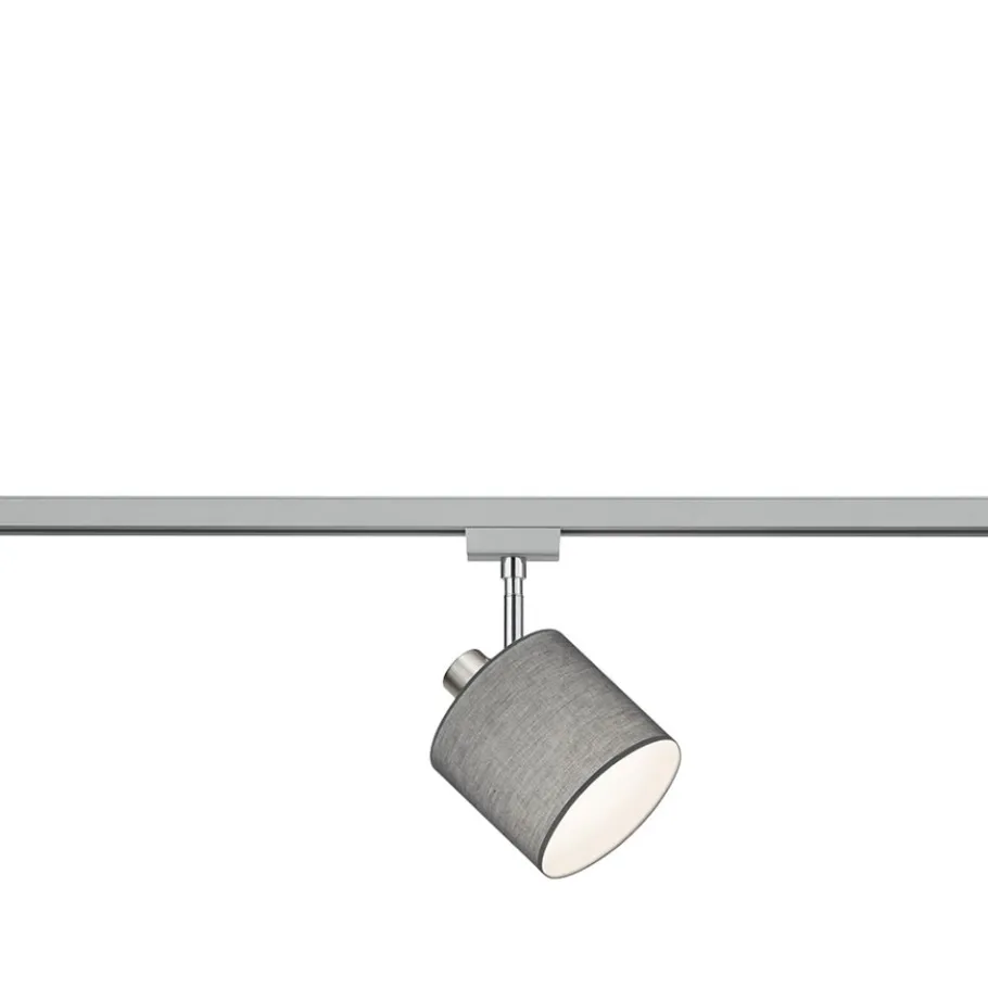 De spot Tommy is een verlichtingsvariant voor het DUOline-railsysteem. Het tweefasesysteem is uiterst flexibel en biedt talrijke mogelijkheden voor de individuele lichtvormgeving. De spot TOMMY staat voor een knus licht, omdat textielkappen de gezelligheidsfactor verhogen en een aangename sfeer scheppen. Tegelijkertijd staan de heldere vormen voor een moderne en strakke stijl die veelzijdig gebruikt en gecombineerd kan worden. Het design in grijs heeft een modern uitzicht en maakt bovendien een uitnodigende en harmonieuze indruk. Voor een energiebesparende verlichting is het gebruik van een ledlichtbron aanbevolen. Deze zijn een optimaal alternatief voor gewone halogeenlampen en staan voor een hoge lichtkwaliteit en een energiebesparing van tot 80%. Bovendien profiteert u bij ledlichtbronnen van een lange levensduur, een geringe warmteontwikkeling en spaart tegelijkertijd het milieu.