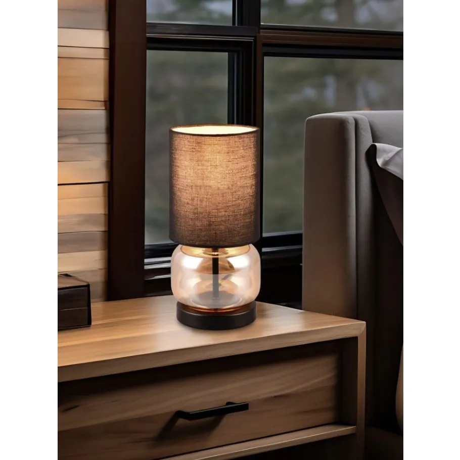 Dompel je huis onder in een heel bijzondere lichtmagie met tafellamp ELIO. De karaktervolle mix van glas, metaal en stoffen materialen smelt samen tot een fascinerende lichtcreatie. De lichtbron in de kap en de lichtreflectie in het glazen lamphuis creëren decoratieve accenten met een indrukwekkend wow-effect. Laat ELIO stralen en onthul zijn magische aura op een ladekast of nachtkastje. De amberkleurige glazen behuizing harmonieert perfect met de zwarte stoffen kap. Het gebruik van LED lichtbronnen wordt aanbevolen voor energiebesparende verlichting. Deze vormen een ideaal alternatief voor conventionele halogeenlichtbronnen en bieden een hoge lichtkwaliteit en energiebesparingen tot 80%. Met LED lichtbronnen profiteert u ook van een lange levensduur en een lage warmteontwikkeling, terwijl het milieu wordt beschermd.