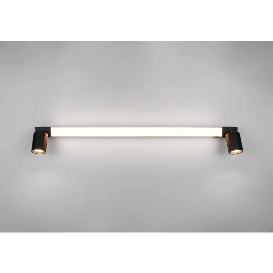 De ENRICO wandlamp is de ideale keuze voor elke moderne badkamer. Het elegante, langwerpige ontwerp zorgt voor een gelijkmatige en aangename verlichting. Bovendien zijn aan beide zijden van de hoofdlamp twee spots bevestigd voor gerichte lichtaccenten en een optimale verlichting. Met een IP44-beschermingsgraad is het armatuur optimaal beschermd tegen spatwater en dus perfect voor vochtige omgevingen. Een geïntegreerde schakelaar maakt het mogelijk om de hoofdlichtbron en de zijspots afzonderlijk aan te sturen, zodat je de verlichting flexibel kunt aanpassen aan je behoeften en voorkeuren. De lichtkleur kan ook individueel worden aangepast en de lamp heeft een praktische geheugenfunctie. De matzwarte afwerking benadrukt de zuiverheid en precisie van het ontwerp en voegt een vleugje luxe en duurzaamheid toe aan de badkamer. Het gebruik van LED lichtbronnen wordt aanbevolen voor energiebesparende verlichting. Deze vormen een ideaal alternatief voor conventionele halogeenlichtbronnen en bieden een hoge lichtkwaliteit en energiebesparingen tot 80%. Met LED lichtbronnen profiteert u ook van een lange levensduur en een lage warmteontwikkeling, terwijl het milieu wordt beschermd.