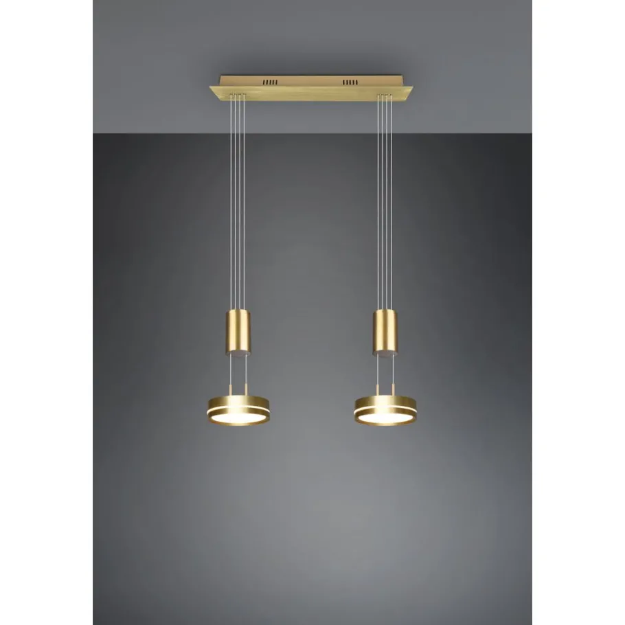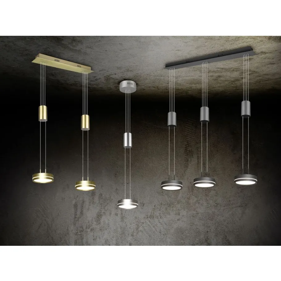 Praktisch, functioneel en stijlvol! De lamp FRANKLIN bekoort met haar moderne, futuristische look. Bovendien zijn de aparte lichtbronnen heel gemakkelijk in de hoogte verstelbaar, waardoor de lamp ideaal voor de woonzone is. Hangend boven een langwerpige eettafel of keukenbar komt de pendellamp optimaal tot uiting. De geïntegreerde SWITCH-dimmer maakt verschillende helderheidsniveaus mogelijk en zorgt voor passende lichtstemmingen. Dankzij het kleurenschema in mat messing zet de lamp stijlvolle accenten en wordt ze een blikvanger in uw interieur. Daarnaast beschikt de lamp over een moderne ledtechnologie die zich onderscheidt met een hoge lichtkwaliteit en energie-efficiëntie. In vergelijking met gewone halogeenlampen kan tot 80% bespaard worden op de energiekosten. Bovendien hebben ledlampen een lange levensduur, produceren minder warmte en zijn milieuvriendelijk.