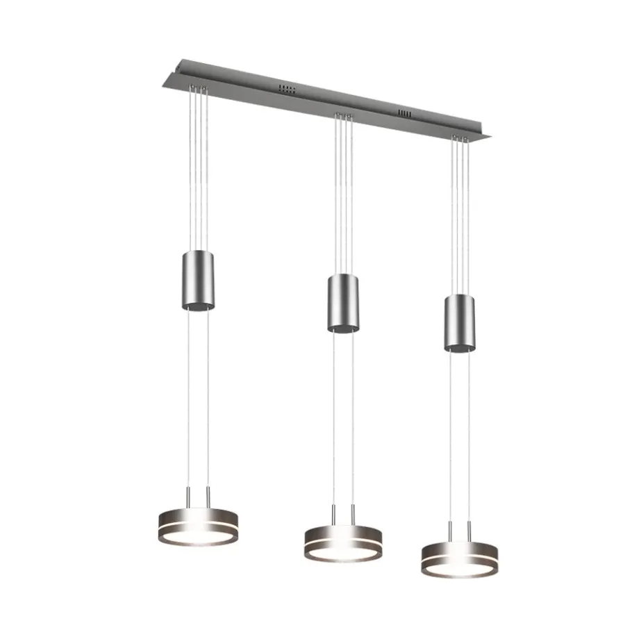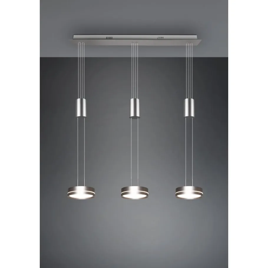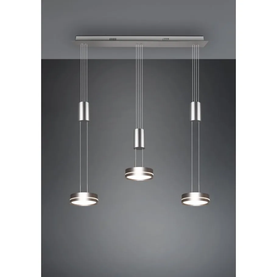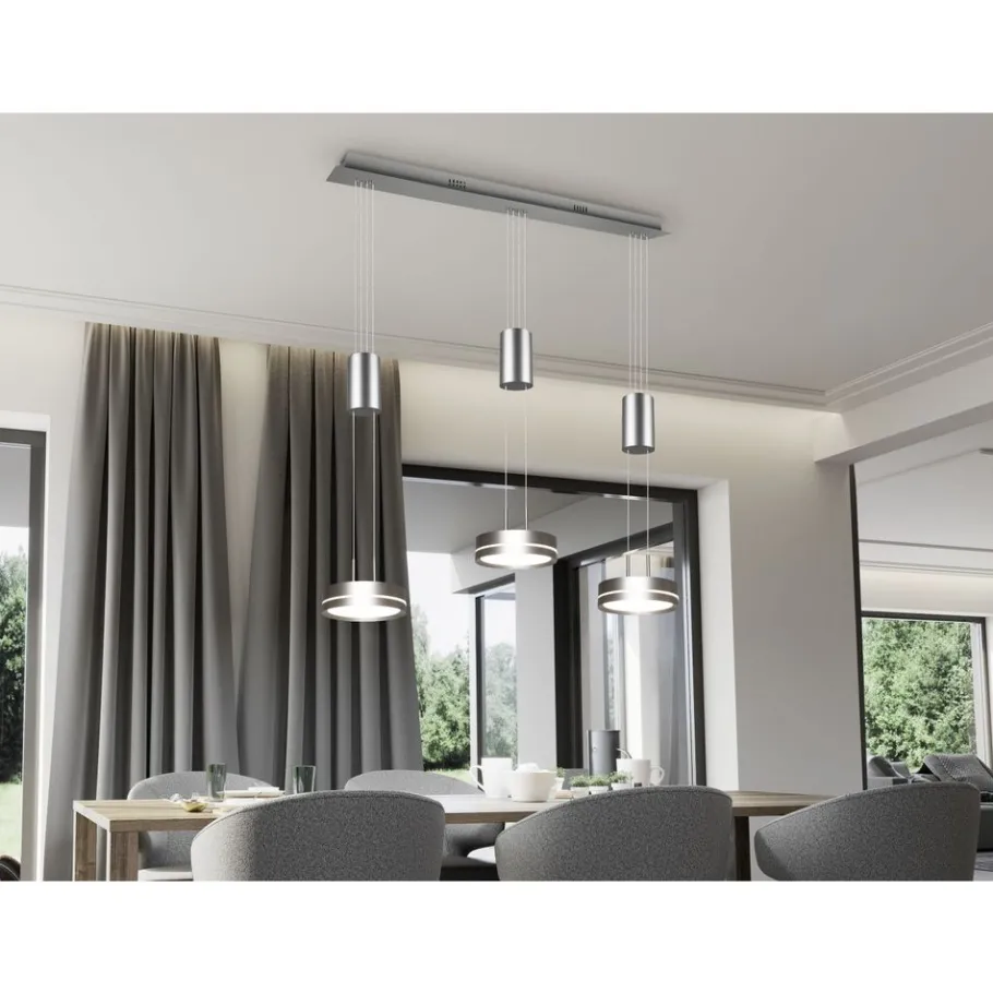 Praktisch, functioneel en stijlvol! De lamp FRANKLIN bekoort met haar moderne, futuristische look. Bovendien zijn de aparte lichtbronnen heel gemakkelijk in de hoogte verstelbaar, waardoor de lamp ideaal voor de woonzone is. Hangend boven een langwerpige eettafel of keukenbar komt de pendellamp optimaal tot uiting. De geïntegreerde SWITCH-dimmer maakt verschillende helderheidsniveaus mogelijk en zorgt voor passende lichtstemmingen. Dankzij het kleurenschema in mat nikkel zet de lamp stijlvolle accenten en kan met aanwezig meubilair gecombineerd worden. Daarnaast beschikt de lamp over een moderne ledtechnologie die zich onderscheidt met een hoge lichtkwaliteit en energie-efficiëntie. In vergelijking met gewone halogeenlampen kan tot 80% bespaard worden op de energiekosten. Bovendien hebben ledlampen een lange levensduur, produceren minder warmte en zijn milieuvriendelijk.