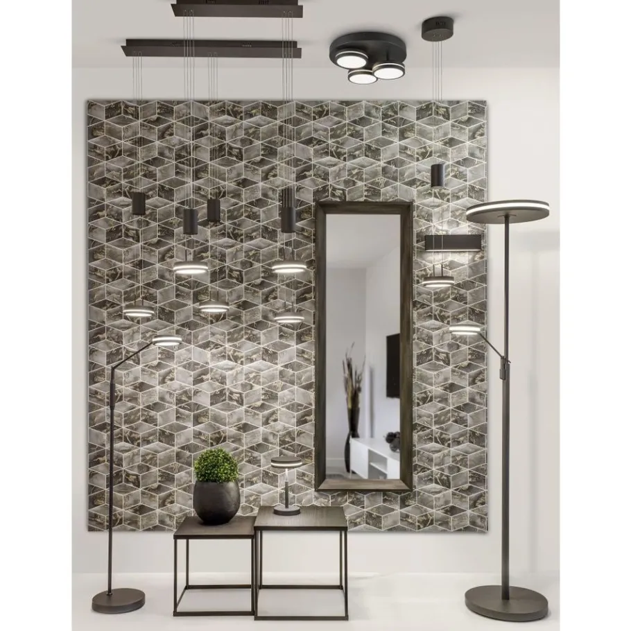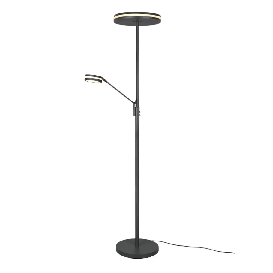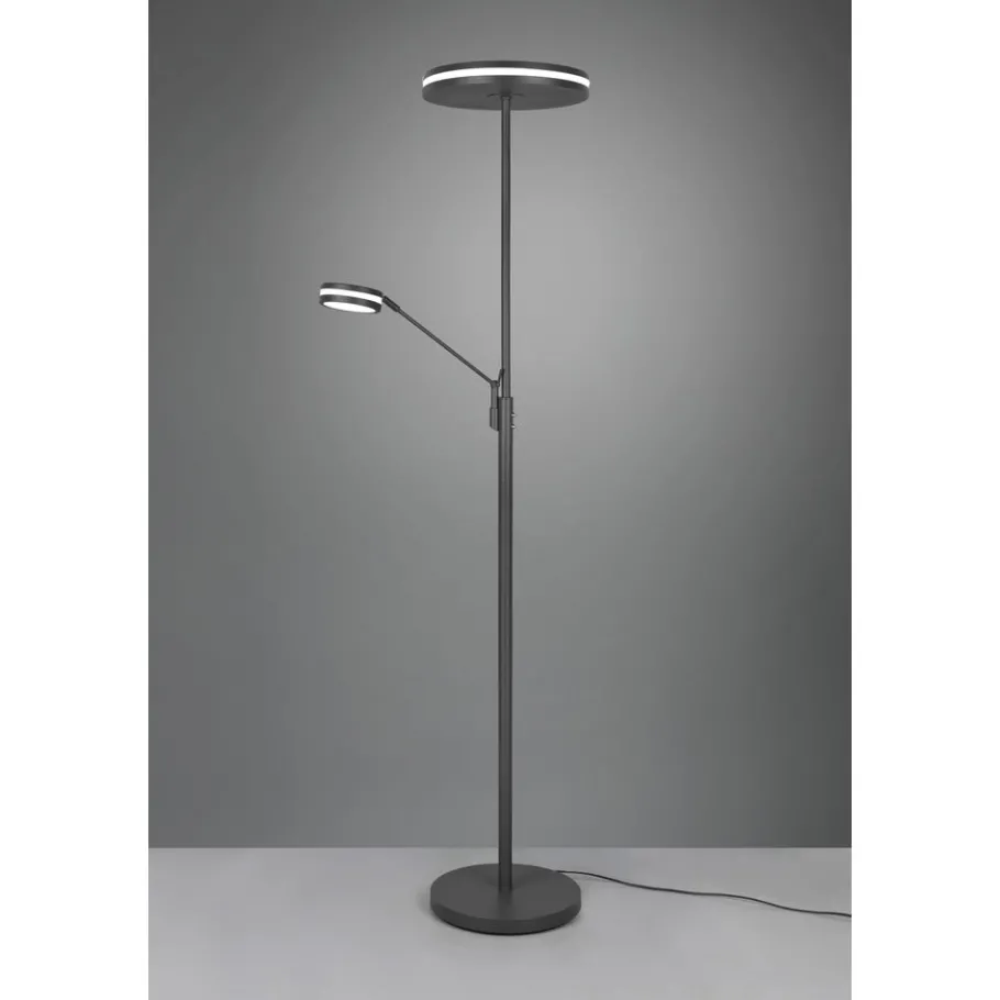 Praktisch, functioneel en stijlvol! De lamp FRANKLIN bekoort met haar moderne, futuristische look. Geplaatst naast de bank of in de gang, zorgt de staande lamp voor een aangename lichtsfeer dankzij een sensordimmer, waarmee de helderheid en lichtkleur niveauloos aangepast kunnen worden. Zowel de hoofdlichtbron als de leesarm kunnen afzonderlijk gebruikt worden via twee aparte schakelaars. Dankzij de bijkomende geïntegreerde geheugenfunctie wordt het laatst ingestelde lichtscenario automatisch hernomen. Dankzij het klassieke kleurschema in oud antraciet is de lamp combineerbaar met vele inrichtingsstijlen. Daarnaast beschikt de lamp over een moderne ledtechnologie die zich onderscheidt met een hoge lichtkwaliteit en energie-efficiëntie. In vergelijking met gewone halogeenlampen kan tot 80% bespaard worden op de energiekosten. Bovendien profiteert u bij ledlichtbronnen van een lange levensduur, een geringe warmteontwikkeling en spaart tegelijkertijd het milieu.