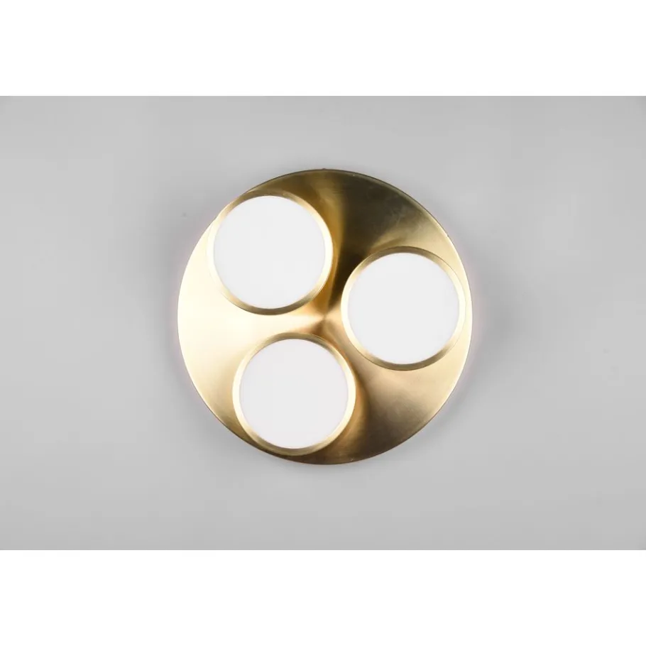 Praktisch, functioneel en stijlvol! De lamp FRANKLIN bekoort met haar moderne, futuristische look. Dankzij de acryl lichtoppervlakken geeft de drievlammige plafondlamp een aangenaam licht af en is daarom ideaal boven een keuken- of salontafel. Met de geïntegreerde SWITCH-dimmer kan met een conventionele lichtschakelaar tussen drie verschillende helderheidsniveaus (100% tot 50% en 25%) worden gekozen en kunnen zo verschillende lichtstemmingen worden gecreëerd. Dankzij het kleurenschema in mat messing zet de lamp stijlvolle accenten en kan met aanwezig meubilair gecombineerd worden. Daarnaast beschikt de lamp over een moderne ledtechnologie die zich onderscheidt met een hoge lichtkwaliteit en energie-efficiëntie. In vergelijking met gewone halogeenlampen kan tot 80% bespaard worden op de energiekosten. Bovendien hebben ledlampen een lange levensduur, produceren minder warmte en zijn milieuvriendelijk.