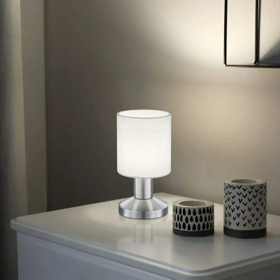 Een absolute alledaagse held en toch een decoratief woonaccessoire. De GARDA tafellamp kan een ladekast in de entree of woonkamer sfeervol verlichten. De lamp heeft een hoogte van 18 cm. Het metalen frame in mat nikkel en de witte stoffen kap van de lamp harmoniëren perfect met elkaar en passen bij een moderne inrichtingsstijl. Voor een energiebesparende verlichting is het gebruik van een ledlichtbron aanbevolen. Deze zijn een optimaal alternatief voor gewone halogeenlampen en staan voor een hoge lichtkwaliteit en een energiebesparing van tot 80%. Bovendien profiteert u bij ledlichtbronnen van een lange levensduur, een geringe warmteontwikkeling en spaart tegelijkertijd het milieu.
