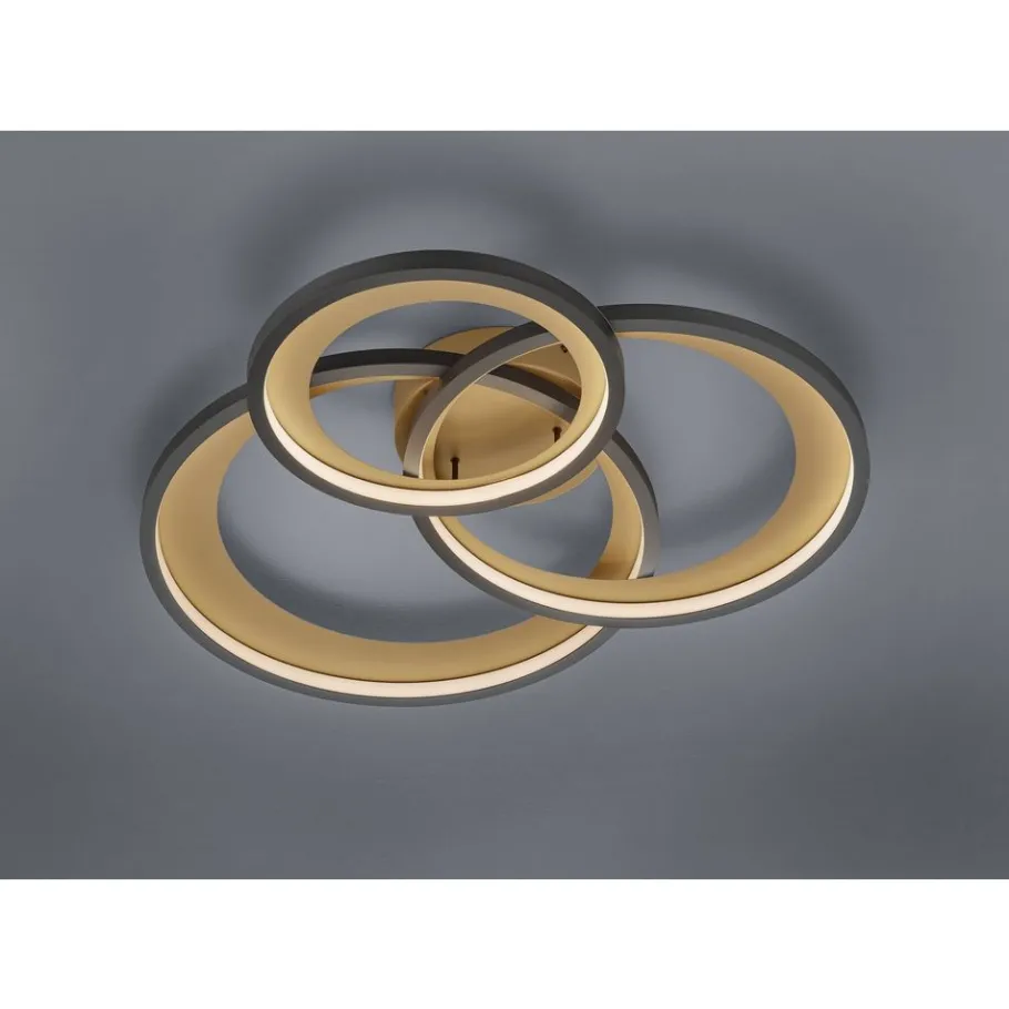 GRANADA – een effectvolle blikvanger. Het tweekleurige concept pas zich aan moderne inrichtings- en kleurwerelden aan en zorgt voor een aangename verlichting. Ze beschikt over een SWITCH-dimmer, via dewelke met een gewone lichtschakelaar drie helderheidsniveaus bediend kunnen worden. Door het kleurenschema in zwart/goud worden glanzende hoogtepunten op het plafond gezet. En het beste: Het licht lijkt bijzonder warm en gezellig. Daarnaast beschikt de lamp over een moderne ledtechnologie die zich onderscheidt met een hoge lichtkwaliteit en energie-efficiëntie. In vergelijking met gewone halogeenlampen kan tot 80% bespaard worden op de energiekosten. Bovendien hebben ledlampen een lange levensduur, produceren minder warmte en zijn milieuvriendelijk.