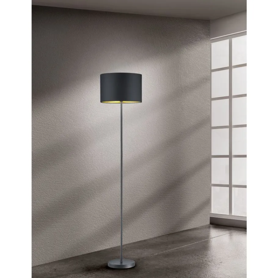 HOSTEL – elegant en gezellig. Lampen met een stoffen kap creëren een aangename woonsfeer. Ze creëren een gezellige sfeer en geven zacht, zacht licht. Dankzij het moderne kleurenschema straalt de HOSTEL vloerlamp zowel gezelligheid als elegantie uit. Vloerlampen kunnen op verschillende manieren worden gebruikt en fungeren als echte sfeermakers, naast de bank als aangenaam leeslicht of om de gang een gezellige sfeer te geven. De vloerlamp heeft een hoogte van 160cm en de kap heeft een diameter van 35cm. De kleurencombinatie van zwart en goud ziet er elegant en verfijnd uit en is een bijzondere blikvanger met een geweldig lichteffect. Voor een energiebesparende verlichting is het gebruik van een ledlichtbron aanbevolen. Deze zijn een optimaal alternatief voor gewone halogeenlampen en staan voor een hoge lichtkwaliteit en een energiebesparing van tot 80%. Bovendien profiteert u bij ledlichtbronnen van een lange levensduur, een geringe warmteontwikkeling en spaart tegelijkertijd het milieu.
