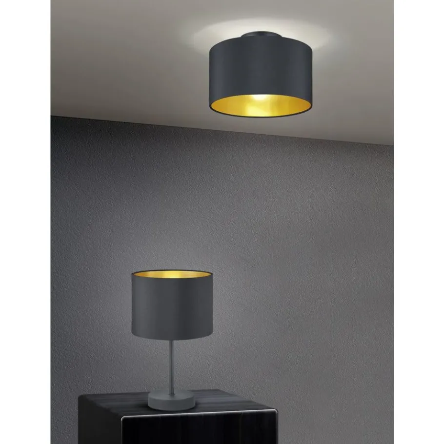 HOSTEL – elegant en gezellig. Lampen met een stoffen kap creëren een aangename woonsfeer. Ze creëren een gezellige sfeer en geven zacht, zacht licht. De HOSTEL plafondlamp straalt gezelligheid en elegantie uit dankzij de moderne kleurstelling. De tweelichts armatuur heeft een diameter van 30 cm en is daarom ideaal voor het verlichten van woon- en slaapkamers. De kleurencombinatie van zwart en goud ziet er elegant en verfijnd uit en is een bijzondere blikvanger met een geweldig lichteffect. Voor een energiebesparende verlichting is het gebruik van een ledlichtbron aanbevolen. Deze zijn een optimaal alternatief voor gewone halogeenlampen en staan voor een hoge lichtkwaliteit en een energiebesparing van tot 80%. Bovendien profiteert u bij ledlichtbronnen van een lange levensduur, een geringe warmteontwikkeling en spaart tegelijkertijd het milieu.