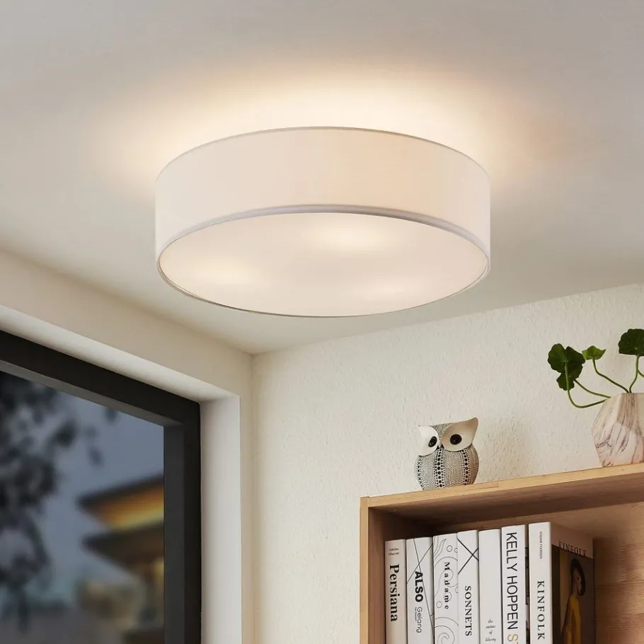 Met de HOTEL plafondlamp creëer je vakkundig stijlvolle lichtaccenten in je woonruimte. Modern of klassiek – de plafondlamp past zich aan je woonruimte aan en komt overal tot zijn recht. Het is een decoratieve aanvulling op gezellige diners of spelletjesavonden met vrienden. Met een diameter van 50 cm is de lamp een blikvanger in elke kamer. De witte stoffen kap zorgt voor een prettige sfeer en een aangename lichtspreiding. Voor een energiebesparende verlichting is het gebruik van een ledlichtbron aanbevolen. Deze zijn een optimaal alternatief voor gewone halogeenlampen en staan voor een hoge lichtkwaliteit en een energiebesparing van tot 80%. Bovendien profiteert u bij ledlichtbronnen van een lange levensduur, een geringe warmteontwikkeling en spaart tegelijkertijd het milieu.