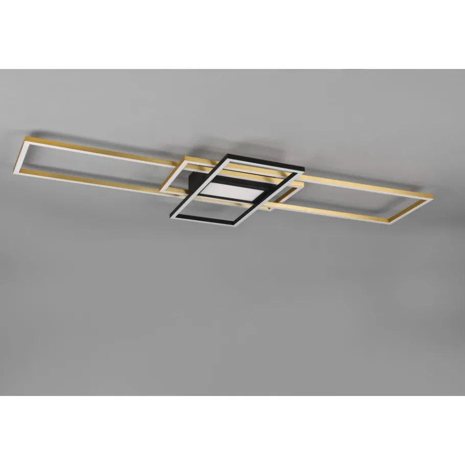 De plafondlamp IRVINE zorgt voor sfeervolle en zachte lichteffecten en overtuigt door haar elegante vormgeving die elke moderne inrichtingsstijl perfect afrondt. Bovendien bekoort de lamp met praktische bijkomende functies. De lamp heeft een nachtlichtfunctie en de helderheid en lichtkleur kunnen niveauloos worden aangepast, zodat de lamp individueel kan worden aangepast naargelang de lichtomstandigheden. Dankzij de geïntegreerde geheugenfunctie wordt het laatste met de afstandsbediening ingestelde lichtscenario ingesteld, zodra het licht met de wandschakelaar wordt uit- en weer ingeschakeld. In mat messing en mat zwart kan de lamp met vele inrichtingsstijlen gecombineerd worden. Daarnaast beschikt de lamp over een moderne ledtechnologie die zich onderscheidt met een hoge lichtkwaliteit en energie-efficiëntie. In vergelijking met gewone halogeenlampen kan tot 80% op de energiekosten worden bespaard. Bovendien profiteert u met ledlichtbronnen van een lange levensduur, lage warmteontwikkeling en beschermt u tegelijkertijd het milieu.