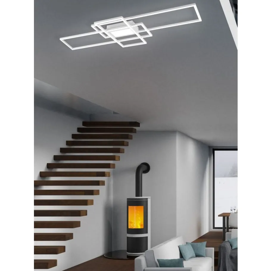 De plafondlamp IRVINE creëert sfeervolle en zachte lichteffecten en is vooral indrukwekkend door het elegante ontwerp, dat perfect past bij elke moderne inrichtingsstijl. De lamp maakt ook indruk met zijn praktische extra functies. De lamp heeft namelijk een nachtlichtfunctie en de helderheid kan ook traploos worden gedimd, zodat deze individueel kan worden aangepast aan de lichtomstandigheden. Dankzij de geïntegreerde geheugenfunctie wordt het laatste lichtscenario dat met de afstandsbediening werd ingesteld, ingesteld zodra de lamp wordt uit- en weer ingeschakeld met de wandschakelaar. De moderne plafondlamp heeft een hoogte van 6,5 cm en een breedte van 105 cm. De lamp is ontworpen in mat wit en kan worden gecombineerd met veel inrichtingsstijlen. Daarnaast beschikt de lamp over een moderne ledtechnologie die zich onderscheidt met een hoge lichtkwaliteit en energie-efficiëntie. In vergelijking met gewone halogeenlampen kan tot 80% bespaard worden op de energiekosten. Bovendien hebben ledlampen een lange levensduur, produceren minder warmte en zijn milieuvriendelijk.