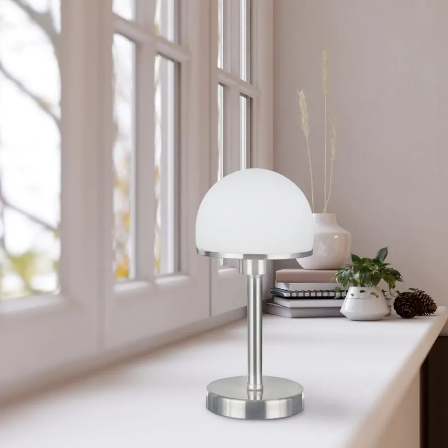 De JOOST II tafellamp is een echte blikvanger in je woonkamer. De lamp maakt indruk met zijn eenvoudige uiterlijk en praktische aanraakfunctie, waarmee je de lamp met één aanraking aan en uit kunt doen. De lampvoet is mat nikkel. Het glas, dat wit is, is versierd met een rand van mat nikkel. Voor een energiebesparende verlichting is het gebruik van een ledlichtbron aanbevolen. Deze zijn een optimaal alternatief voor gewone halogeenlampen en staan voor een hoge lichtkwaliteit en een energiebesparing van tot 80%. Bovendien profiteert u bij ledlichtbronnen van een lange levensduur, een geringe warmteontwikkeling en spaart tegelijkertijd het milieu.