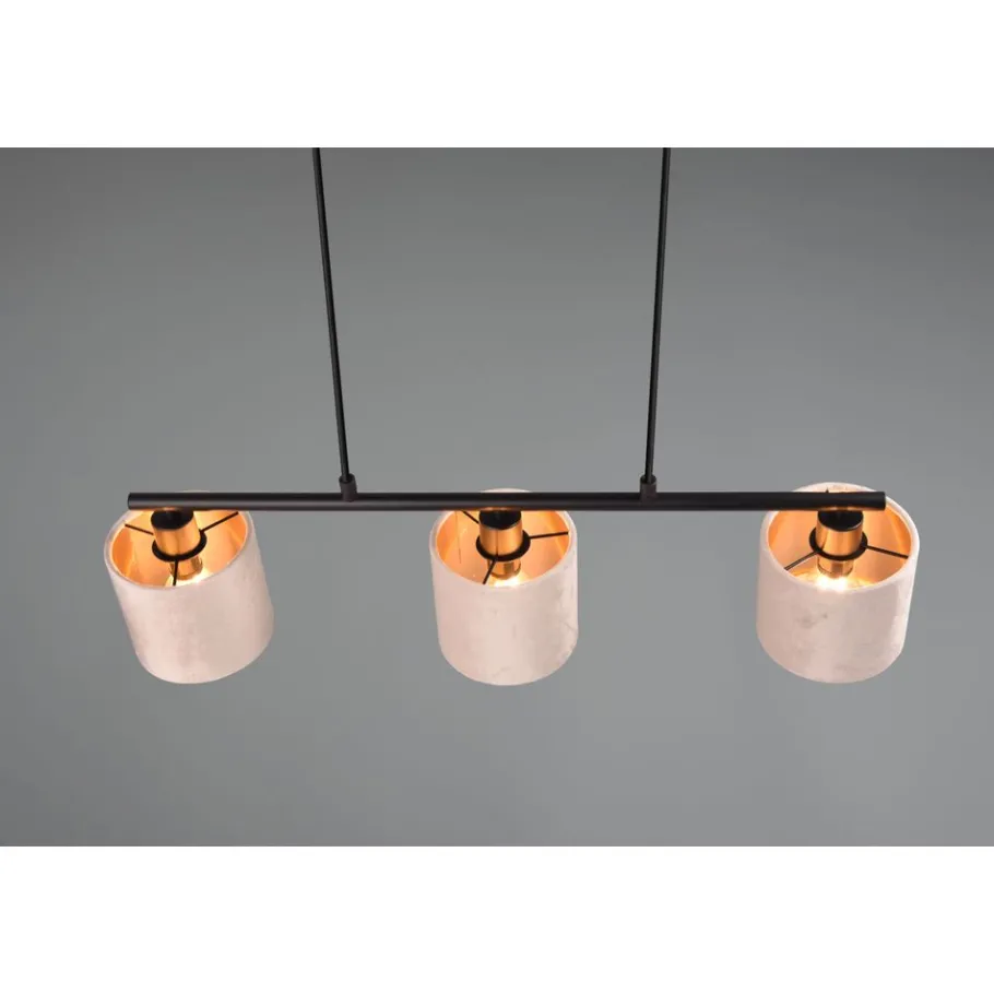 De klassieke en eenvoudige schoonheid van de JULIETA hanglamp creëert een elegant en sfeervol effect. De neutrale kleur en de warm ogende stof van de kappen hullen de lamp in gezelligheid en stralen rust uit in je omgeving. Ook de gouden nuances aan de binnenkant van de kappen maken van de lamp een stijlvolle blikvanger. Ook jij kunt een harmonieuze sfeer creëren rond je eethoek! De materiaalmix van zwart mat metaal en beige fluweel kan gemakkelijk worden gecombineerd met bestaande interieurs. Het gebruik van LED lichtbronnen wordt aanbevolen voor energiebesparende verlichting. Deze vormen een ideaal alternatief voor conventionele halogeenlichtbronnen en bieden een hoge lichtkwaliteit en energiebesparingen tot 80%. Met LED lichtbronnen profiteert u ook van een lange levensduur en een lage warmteontwikkeling, terwijl het milieu wordt beschermd.