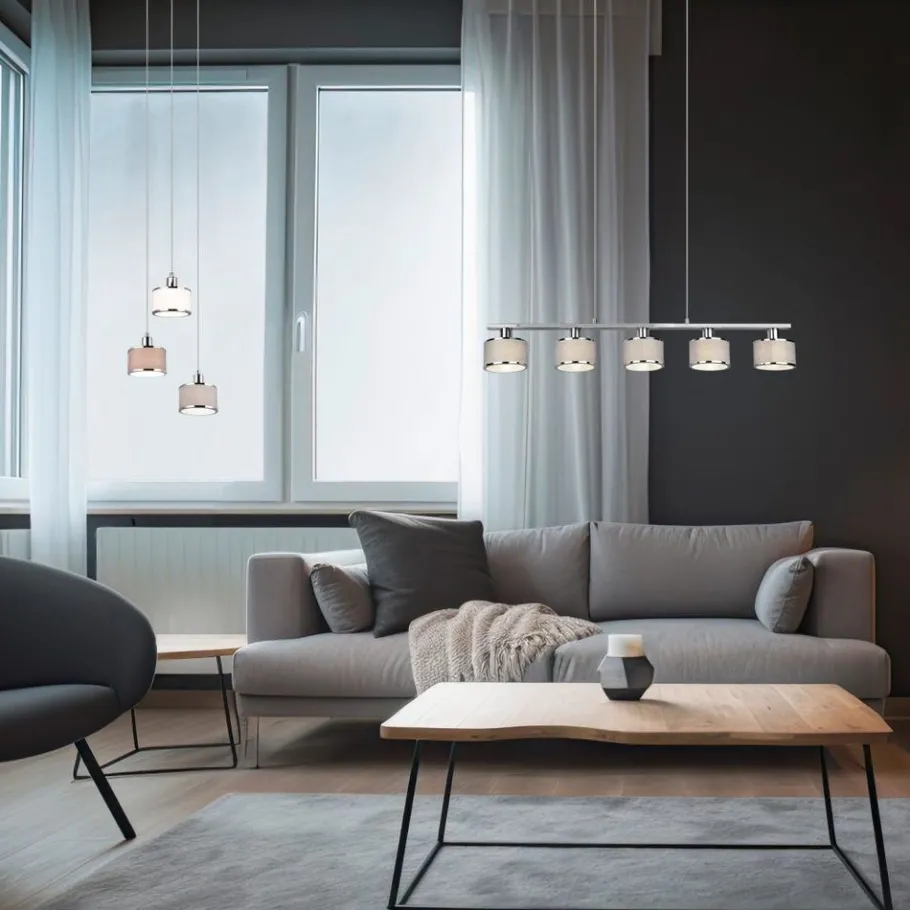 De armatuurserie KAPRUN – warme flair gecombineerd met licht! De geslaagde combinatie van cilindrische vormen en hoogwaardig textielweefsel creëert een sfeer van elegantie en lichtharmonie. De drielichts pendelarmatuur zorgt bovendien voor warme reflecties en een gezellig, uitnodigend lichtspel boven een eettafel of aanrecht. De chique kleurnuances in chroom, grijs, bruin en wit geven je huis een individueel tintje en onderstrepen het wow-effect. Het gebruik van LED lichtbronnen wordt aanbevolen voor energiebesparende verlichting. Deze vormen een ideaal alternatief voor conventionele halogeenlichtbronnen en bieden een hoge lichtkwaliteit en energiebesparingen tot 80%. Met LED lichtbronnen profiteert u ook van een lange levensduur en een lage warmteontwikkeling, terwijl het milieu wordt beschermd.