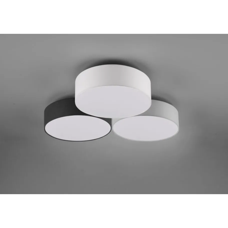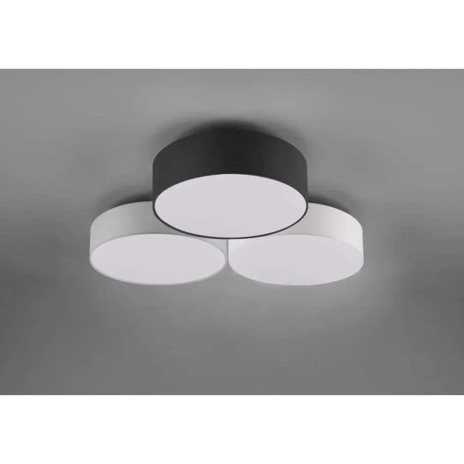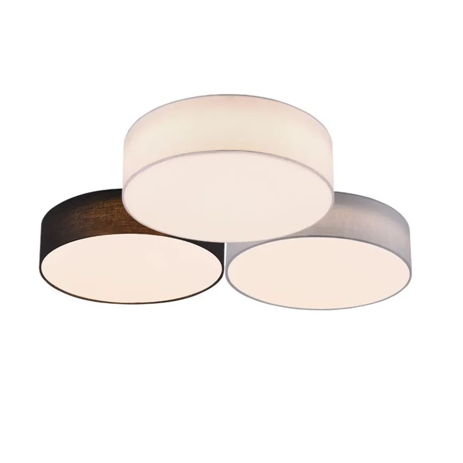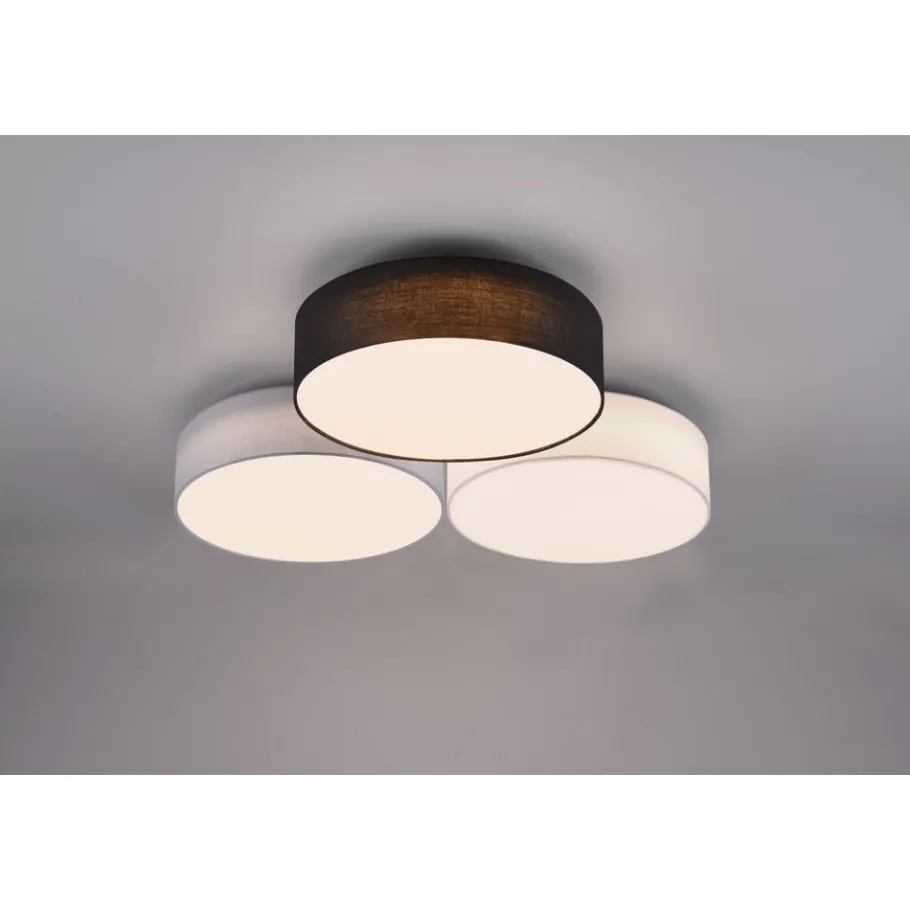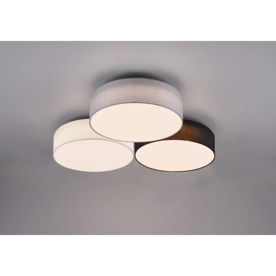 Gereduceerde vormtaal De plafondlamp LUGANO bekoort met een combinatie van elegantie en gezelligheid. Dankzij de uitvoering met drie textielkappen schept de lamp een bijzonder stemmingsvolle sfeer. Bovendien beschikt de lamp over een SWITCH-dimmer die met behulp van een gewone lichtschakelaar helderheidsniveaus van 100, 50 en 25 procent mogelijk maakt. Een witte, een zwarte en een grijze stoffen kap vormen samen een harmonische combinatie die veelzijdig kan worden gebruikt. Voor een energiebesparende verlichting is het gebruik van een ledlichtbron aanbevolen. Deze zijn een optimaal alternatief voor gewone halogeenlampen en staan voor een hoge lichtkwaliteit en een energiebesparing van tot 80%. Bovendien profiteert u bij ledlichtbronnen van een lange levensduur, een geringe warmteontwikkeling en spaart tegelijkertijd het milieu.
