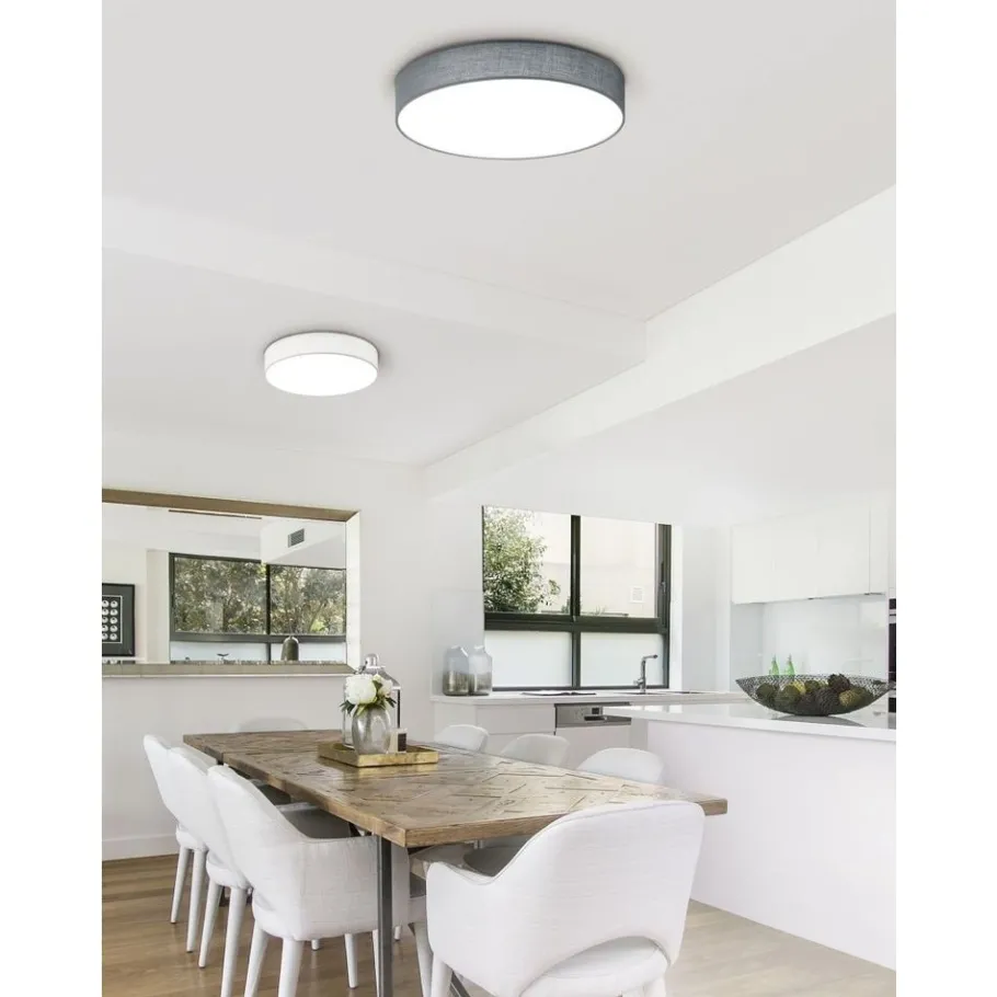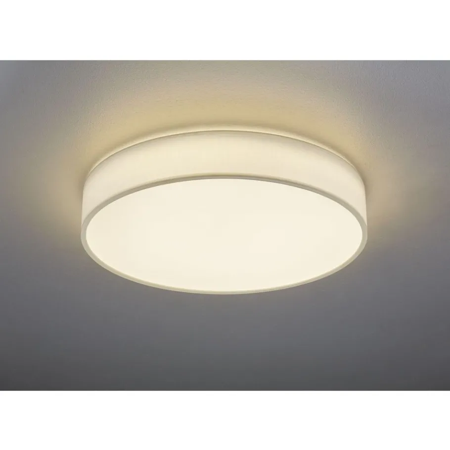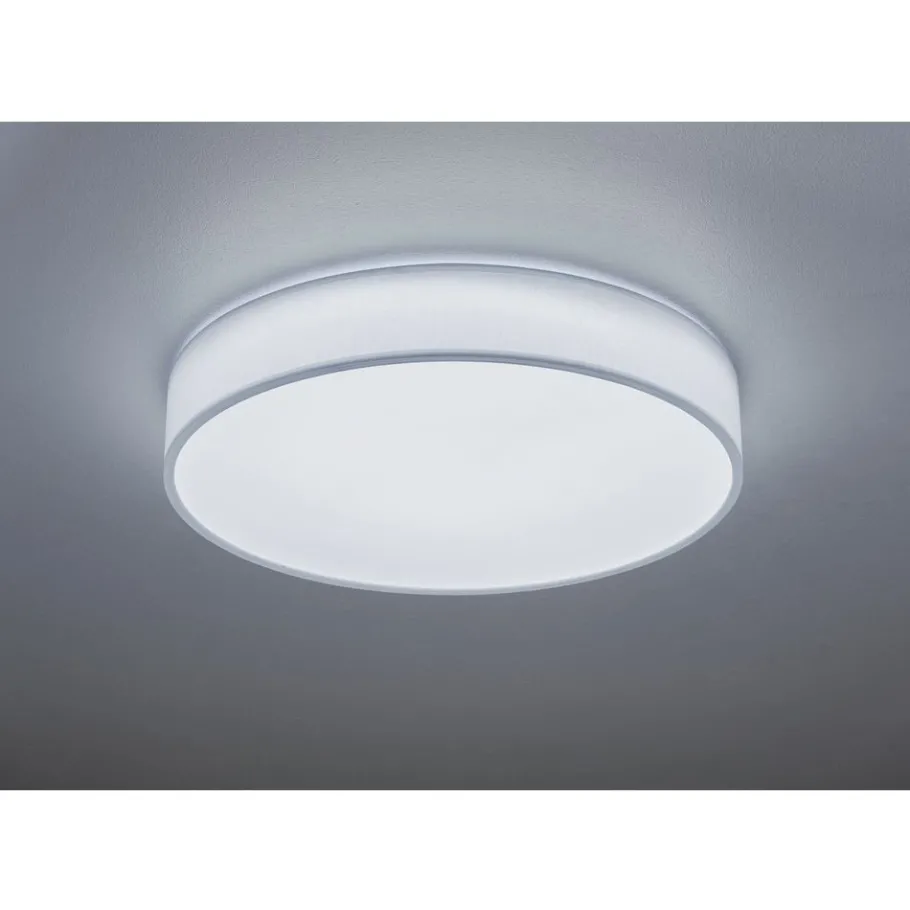 De plafondlamp LUGANO maakt indruk met haar combinatie van elegantie en gezelligheid. Het armatuur met een eenvoudige stoffen kap heeft een diameter van 60 cm en is daarmee een echte blikvanger in woonkamers, slaapkamers of entreezones. Textiellampen creëren een sfeervolle ambiance en gezelligheid en worden beschouwd als een klassieker in decoratieve verlichting. Het licht wordt zachtjes uitgestraald in de omgeving via de stoffen kap en creëert een gezellig karakter. De plafondlamp kan met de afstandsbediening worden gedimd en de lichtkleur kan traploos worden ingesteld tussen 3000 en 5000 Kelvin voor individuele aanpassing aan verschillende lichtomstandigheden. In tijdloos wit is de LUGANO bewust eenvoudig gehouden en past hij gemakkelijk in bestaande kleurenschema’s. Daarnaast beschikt de lamp over een moderne ledtechnologie die zich onderscheidt met een hoge lichtkwaliteit en energie-efficiëntie. In vergelijking met gewone halogeenlampen kan tot 80% bespaard worden op de energiekosten. Bovendien hebben ledlampen een lange levensduur, produceren minder warmte en zijn milieuvriendelijk.