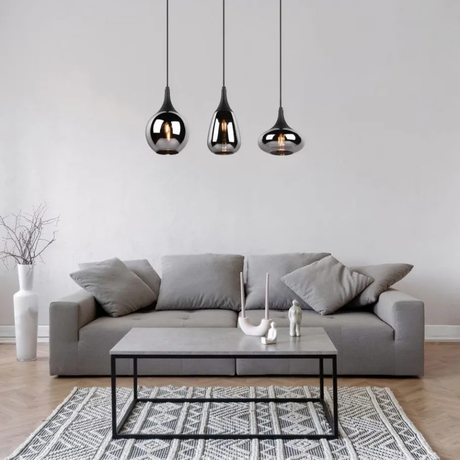 De hanglamp LUMINA is door de elegante glazen kappen een bijzondere blikvanger in uw woonruimte! De verschillende vormen van de drie kappen en de compositie van metaal en glas zorgen voor een mooie en unieke lichtsfeer en geven een moderne toets aan uw eetzone. Dankzij het kleurschema in mat zwart en de bedampte chromen glazen kappen is er veel ruimte voor extra tinten, waardoor de lamp wonderbaarlijk eenvoudig te integreren is in bestaande woonconcepten. Voor een energiebesparende verlichting is het gebruik van een ledlichtbron aanbevolen. Deze zijn een optimaal alternatief voor gewone halogeenlampen en staan voor een hoge lichtkwaliteit en een energiebesparing van tot 80%. Bovendien profiteert u bij ledlichtbronnen van een lange levensduur, een geringe warmteontwikkeling en spaart tegelijkertijd het milieu.