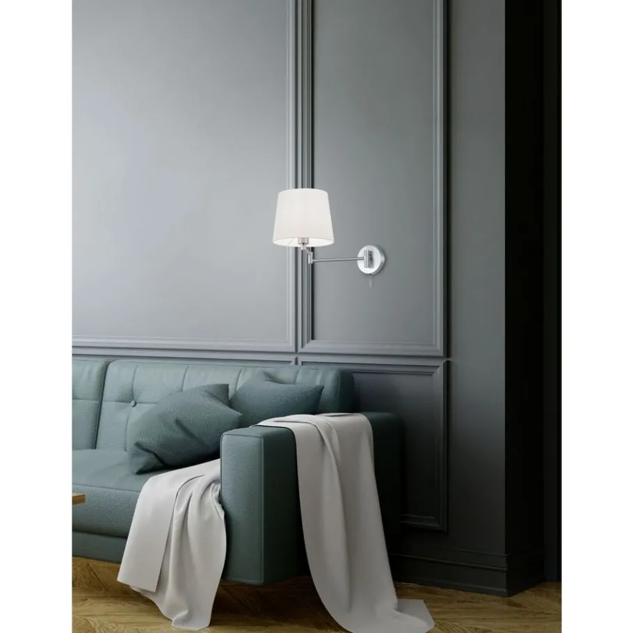 Eenvoudig, elegant en designgericht. De hoogwaardige wandlamp LYON maakt indruk met haar moderne stijl en ongecompliceerde ontwerp. De wandlamp roept een aangename lichtsfeer op en is tegelijkertijd ongelooflijk decoratief. Idealiter wordt de LYON in de slaapkamer naast het bed geplaatst, want de combinatie van een zwenkarm, een projectie van 69 cm en flexibele montage maakt de lamp ideaal als lamp naast het bed. De LYON is uitgerust met de FLEXconnect-functie, wat betekent dat hij in elke positie aan de muur kan worden bevestigd en via een kabel kan worden aangesloten op het stopcontact, of geschikt is voor een vaste aansluiting zonder kabel dankzij de geïntegreerde kabeluitgang. De combinatie van mat nikkel en een witte stoffen kap is perfect afgerond en creëert een elegante algemene look. Voor een energiebesparende verlichting is het gebruik van een ledlichtbron aanbevolen. Deze zijn een optimaal alternatief voor gewone halogeenlampen en staan voor een hoge lichtkwaliteit en een energiebesparing van tot 80%. Bovendien profiteert u bij ledlichtbronnen van een lange levensduur, een geringe warmteontwikkeling en spaart tegelijkertijd het milieu.