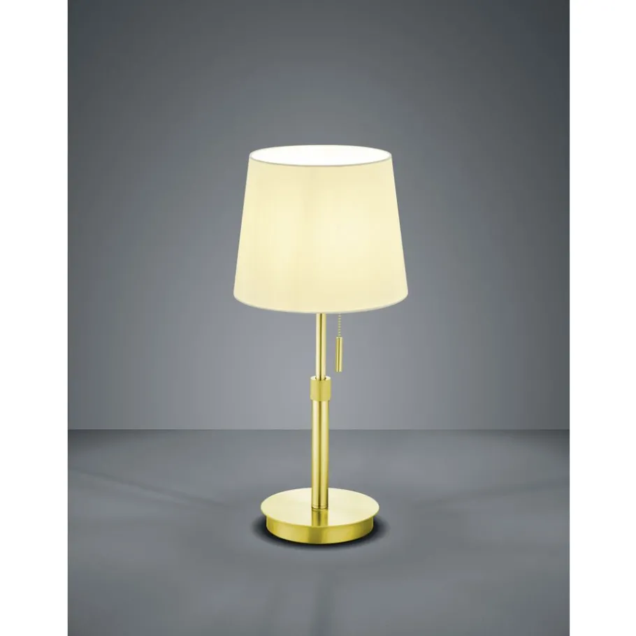 Eenvoudig, elegant en designgericht. De hoogwaardige tafellamp LYON maakt indruk met haar moderne stijl en ongecompliceerde ontwerp. De tafellamp roept een aangename lichtstemming op en is tegelijkertijd ongelooflijk decoratief. De hoogte van de lamp kan worden ingesteld tussen 45 en 56,5 cm, waardoor hij ongelooflijk flexibel te gebruiken en te plaatsen is. Als bedlamp in de slaapkamer, op een ladekast of op een bijzettafel in de woonkamer, de lamp is ook overdag een echt sieraad. De combinatie van geborsteld en glanzend messing wordt afgerond door een witte stoffen kap, wat zorgt voor een geraffineerd totaalbeeld. Voor een energiebesparende verlichting is het gebruik van een ledlichtbron aanbevolen. Deze zijn een optimaal alternatief voor gewone halogeenlampen en staan voor een hoge lichtkwaliteit en een energiebesparing van tot 80%. Bovendien profiteert u bij ledlichtbronnen van een lange levensduur, een geringe warmteontwikkeling en spaart tegelijkertijd het milieu.