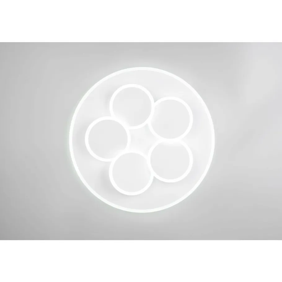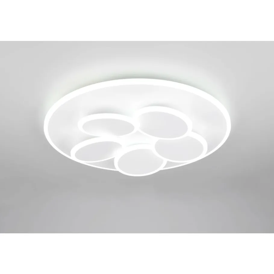 De MANDALA plafondlamp is een waar kunstwerk! De vijf kleine verlichte cirkelvormige vlakken en de buitenste verlichte ring geven dit kunstwerk een aangename diepte en een indrukwekkend wow-effect. Je kunt de helderheid en lichtkleur naar wens aanpassen met een afstandsbediening. Je kunt de helderheid ook instellen op 100%, 50% en 25% met een conventionele lichtschakelaar. Het nachtlampje en de geheugenfunctie vullen de lamp perfect aan. De moderne matwitte kleur onderstreept het speciale en elegante ontwerp van de armatuur. De armatuur is ook voorzien van moderne LED-technologie, die wordt gekenmerkt door een hoge lichtkwaliteit en energie-efficiëntie. Vergeleken met conventionele halogeenlichtbronnen kan tot 80% op de energiekosten worden bespaard. LED lichtbronnen hebben ook een lange levensduur, produceren minder warmte en beschermen het milieu.