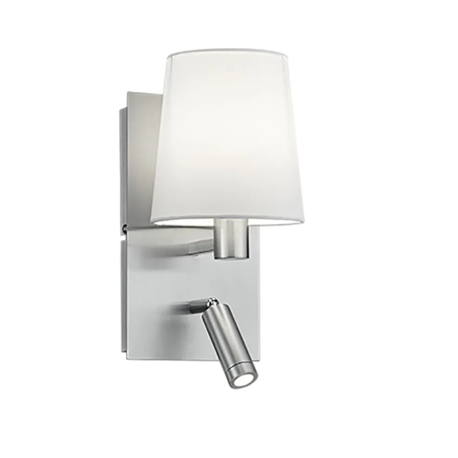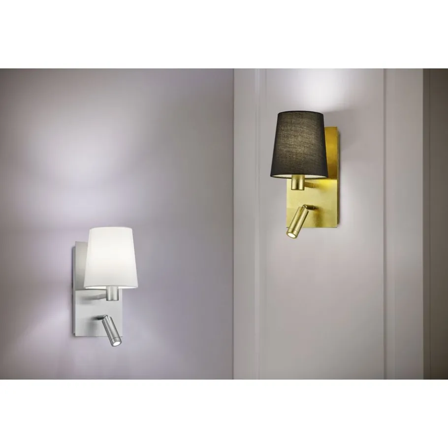 De MARRIOT wandlamp met leesarm maakt indruk met haar aantrekkelijke design en handige en flexibele gebruik. Met de zwenkbare leesarm kan de lichtstraal gericht worden en dienovereenkomstig worden aangepast. Beide lichtbronnen kunnen afzonderlijk worden in- en uitgeschakeld met geïntegreerde schakelaars. Idealiter wordt de MARRIOT naast het bed in de slaapkamer geplaatst, omdat de combinatie van het zachte licht van de stoffen kap en de flexibele leesarm de armatuur ideaal maakt als bed- en leeslamp. De MARRIOT is ook uitgerust met de FLEXconnect-functie, zodat hij in elke positie aan de muur kan worden bevestigd dankzij de geïntegreerde kabeluitgang en kan worden aangesloten via een voedingskabel of geschikt is voor een vaste aansluiting zonder voedingskabel. De combinatie van mat nikkel en wit heeft een discreet en tijdloos effect, wat betekent dat de wandlamp gemakkelijk kan worden geïntegreerd in bestaande kleurenschema’s. De armatuur is ook voorzien van moderne LED-technologie, die wordt gekenmerkt door een hoge lichtkwaliteit en energie-efficiëntie. Vergeleken met conventionele halogeenlichtbronnen kan tot 80% op de energiekosten worden bespaard. LED lichtbronnen hebben ook een lange levensduur, produceren minder warmte en beschermen het milieu. Voor energiebesparende verlichting wordt het gebruik van een LED lichtbron ook aanbevolen voor de lamphouder.