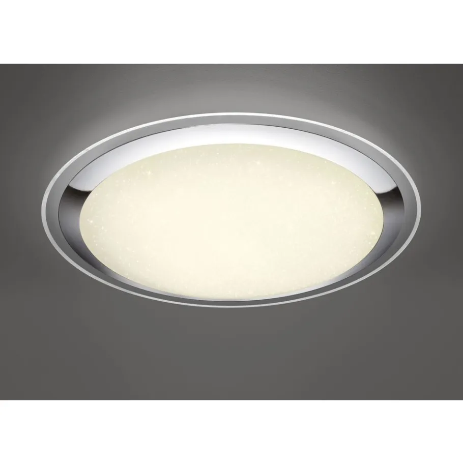 Een blikvanger op alle niveaus! De MIKO plafondlamp met hoogwaardige acryl sterlichtkap maakt indruk met een diameter van 85 cm en is daarmee een echte highlight in je woonkamer. Bijna geen enkele andere leefruimte wordt op zoveel manieren gebruikt als de woonkamer. Daarom is het des te belangrijker om verlichting te kiezen die aan verschillende behoeften kan voldoen. De MIKO combineert verschillende speciale functies om aan de eisen van optimale verlichting te voldoen. De traploze aanpassing van de lichtkleur heeft een bijzonder sfeervol effect, omdat er steeds weer nieuwe lichtscènes kunnen worden gecreëerd. Met de afstandsbediening kan de lichtkleur traploos worden ingesteld tussen 3000 en 6000 Kelvin en de geïntegreerde dimmer biedt nog meer mogelijkheden om de sfeer te bepalen en te zorgen voor een aangename ruimteverlichting. De lamp heeft ook een nachtlichtfunctie. De witte kap met chromen rand zorgt voor een harmonieus totaalbeeld en kan harmonieus worden geïntegreerd in verschillende kleurconcepten. Daarnaast beschikt de lamp over een moderne ledtechnologie die zich onderscheidt met een hoge lichtkwaliteit en energie-efficiëntie. In vergelijking met gewone halogeenlampen kan tot 80% bespaard worden op de energiekosten. Bovendien hebben ledlampen een lange levensduur, produceren minder warmte en zijn milieuvriendelijk.