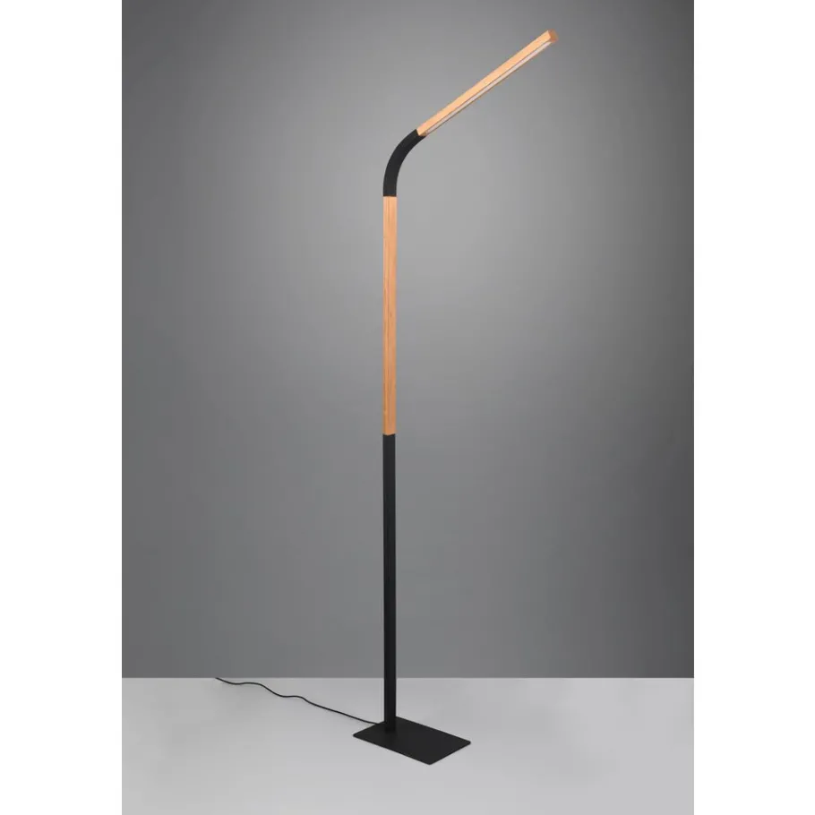 Ontspannen met een boek of tablet na het werk – dat vraagt om een harmonieuze lichtsfeer: Met de geïntegreerde SWITCH-dimmer biedt de NORRIS vloerlamp een oplossing die gemakkelijk is voor de ogen, omdat de helderheid naar wens kan worden aangepast in drie niveaus (100%, 50% en 25%). Dankzij de flexibele arm van de NORRIS kan het licht individueel worden gericht, waardoor de lamp de perfecte keuze is voor een avondpauze met een tablet of lievelingsboek. Plaats de vloerlamp naast of achter de bank en geniet van je gezellige leeshoekje! Het puristische silhouet van de lamp en de geslaagde combinatie van natuurlijk hout en zwart mat metaal zijn in elk opzicht indrukwekkend. De armatuur is ook voorzien van moderne LED-technologie, die wordt gekenmerkt door een hoge lichtkwaliteit en energie-efficiëntie. Vergeleken met conventionele halogeenlichtbronnen kan tot 80% op de energiekosten worden bespaard. LED lichtbronnen hebben ook een lange levensduur, produceren minder warmte en beschermen het milieu.