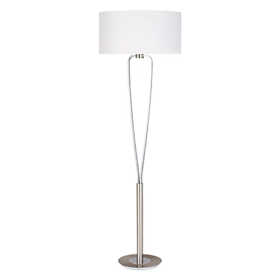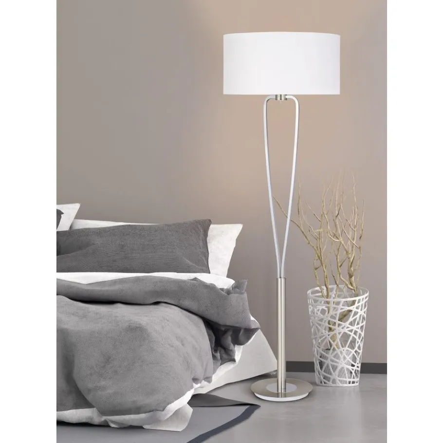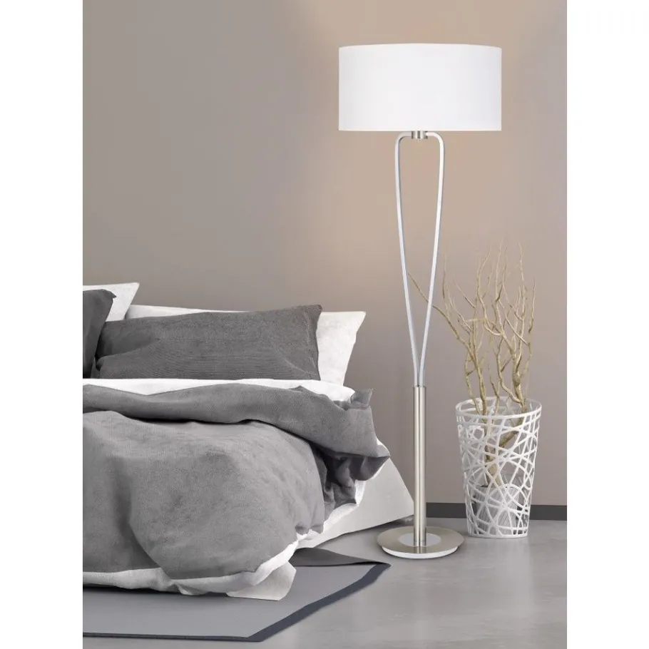 De hoogwaardige vloerlamp PARIS II heeft een modern ontwerp en creëert een gezellige sfeer. De voet van geborsteld nikkel en de tweedelige chromen schacht worden gecombineerd met een witte lampenkap van elegante stof. De schakelaar voor het in- en uitschakelen van de vloerlamp bevindt zich onder de kaphouder en de lamp heeft een hoogte van 160 cm en de lampenkap heeft een diameter van 35 cm. De E27 fitting kan worden voorzien van een lichtbron naar keuze met een maximaal vermogen van 60 watt.