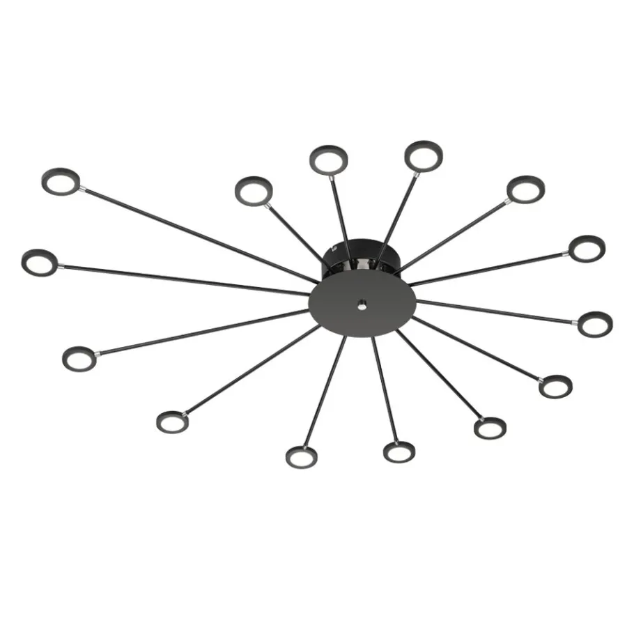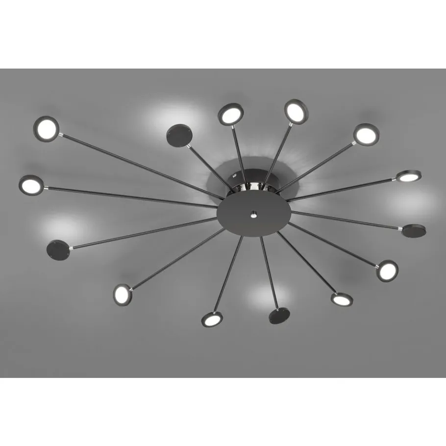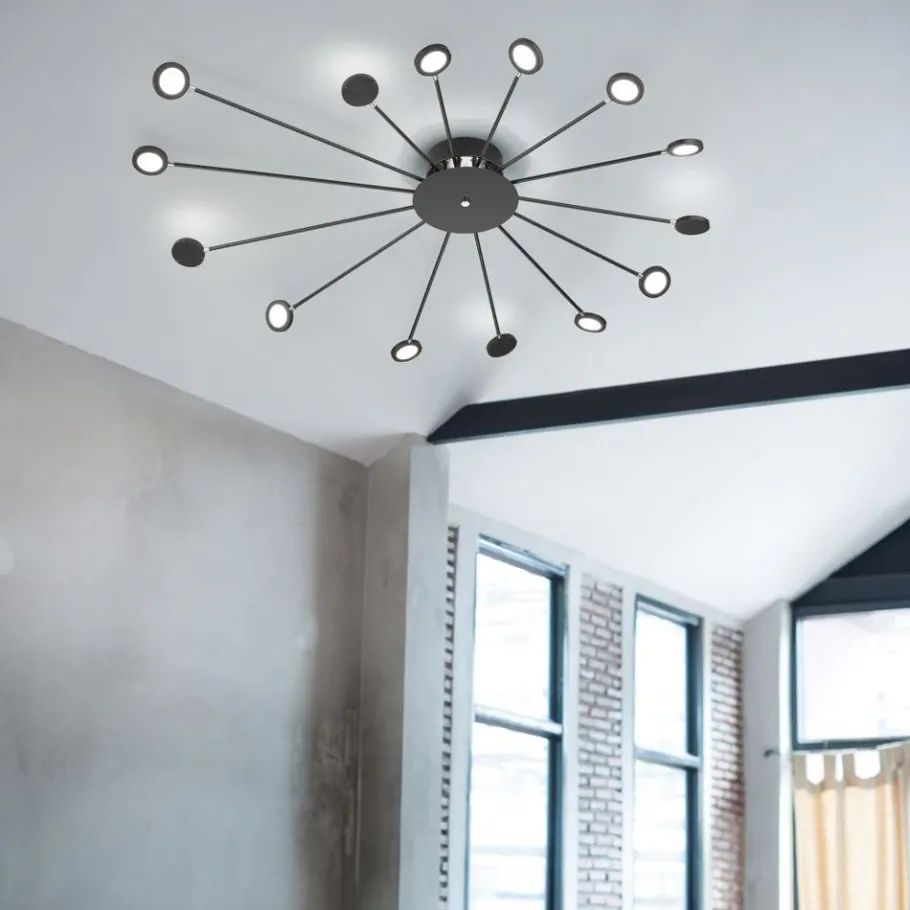 Op zoek naar een decoratieve lamp? De wandlamp PEACOCK zorgt niet alleen voor spannende lichtaccenten, maar is ook geschikt als decoratief element in de woonzone of op de gang. Daarnaast beschikt de lamp over een SWITCH-dimmer waardoor de helderheid in niveaus afgestemd kan worden van 100% naar 50% en 25% door middel van een gewone lichtschakelaar. Bovendien is de lamp dankzij de functies FLEXconnect zowel voor een vaste aansluiting als ook voor het gebruik met stekkerkabel geschikt. Voor een gezellige sfeer zorgt daarnaast de indirecte verlichting die weerspiegeld wordt op de muur. De vijftien lichtbronnen zijn telkens apart zwenk- en draaibaar zodat een individuele oriëntatie en een indirecte belichting mogelijk zijn. Door het kleurschema in mat zwart heeft de lamp een modern uitzicht dat in bijna alle inrichtingsstijlen geïntegreerd kan worden. Daarnaast beschikt de lamp over een moderne ledtechnologie die zich onderscheidt met een hoge lichtkwaliteit en energie-efficiëntie. In vergelijking met gewone halogeenlampen kan tot 80% bespaard worden op de energiekosten. Bovendien hebben ledlampen een lange levensduur, produceren minder warmte en zijn milieuvriendelijk.
