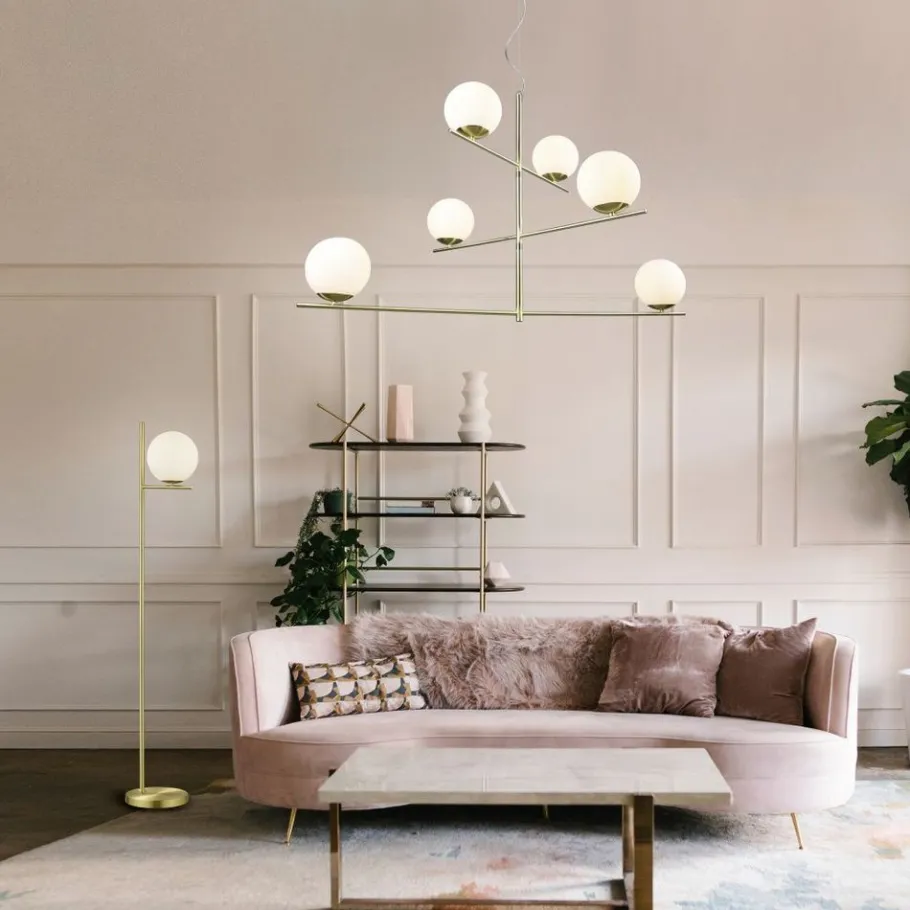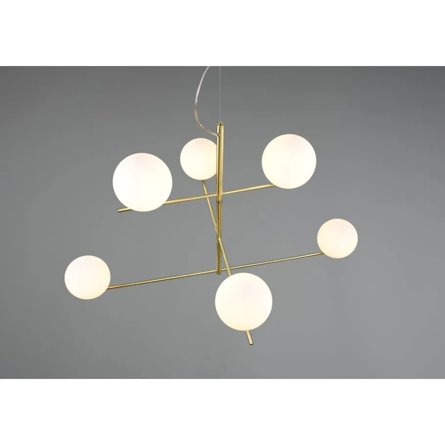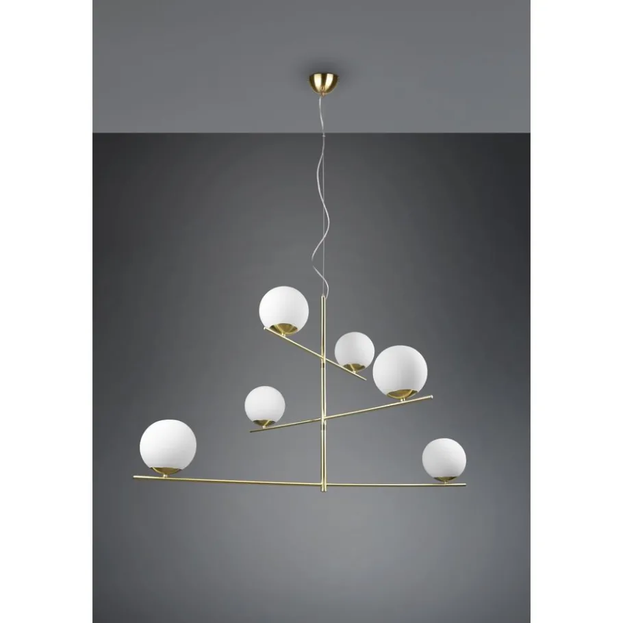 Eenvoudig en absoluut stijlvol! Of het nu gaat om een strakke, rechtlijnige inrichtingsstijl of toch een iets speelsere, de lampen van de serie PURE zorgen voor eenvoudige decoratieve accenten om elke look een vleugje elegantie te verlenen. De eenvoudige stijl is absoluut eigentijds en kan worden gecombineerd met zowel opvallende als subtiele elementen. De zwenkbare elementen van de zesvlammige hanglamp kunnen individueel worden gericht. De lamp is dan ook perfect voor het verlichten van de eettafel en het benadrukken van uw eigen woonstijl. Het puristisch-minimalistische design van de PURE is een mix van verfijnde metaallook in mat messing gecombineerd met wit glas. Voor een energiebesparende verlichting is het gebruik van een ledlichtbron aanbevolen. Deze zijn een optimaal alternatief voor gewone halogeenlampen en staan voor een hoge lichtkwaliteit en een energiebesparing van tot 80%. Bovendien profiteert u bij ledlichtbronnen van een lange levensduur, een geringe warmteontwikkeling en spaart tegelijkertijd het milieu.