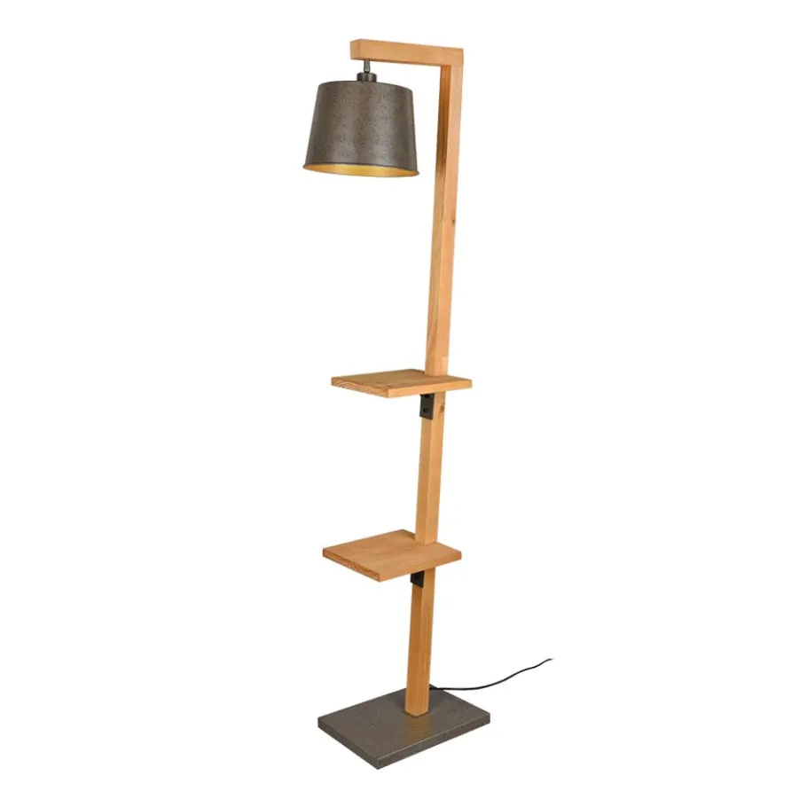 De staande lamp RODRIGO is praktisch en decoratief tegelijk! De kap is zwenkbaar en maakt een doelgerichte verlichting mogelijk. De massieve houten corpus biedt bovendien twee legbladen voor boeken of decoratie. De elementen in antiek nikkel passen uitstekend bij het lichte hout en zorgen voor een gezellige, rustieke omgeving. Voor een energiebesparende verlichting is het gebruik van een ledlichtbron aanbevolen. Deze zijn een optimaal alternatief voor gewone halogeenlampen en staan voor een hoge lichtkwaliteit en een energiebesparing van tot 80%. Bovendien profiteert u bij ledlichtbronnen van een lange levensduur, een geringe warmteontwikkeling en spaart tegelijkertijd het milieu.