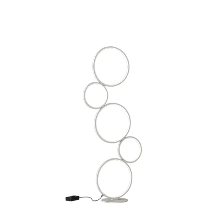 Met zijn vijf gestapelde ringen van verschillende diameters is de RONDO vloerlamp een echte blikvanger. De vloerlamp heeft een geïntegreerde dimmer die wordt bediend via de snoerschakelaar. Hiermee kun je flexibel de helderheid regelen van de LED’s die aan de binnenkant van elke cirkel zijn geïnstalleerd. De 115 cm hoge vloerlamp is een echt decoratief element en verfraait stijlvol elke woonruimte. Dankzij de mat witte kleur kan de lamp met vele inrichtingsstijlen gecombineerd worden. Daarnaast beschikt de lamp over een moderne ledtechnologie die zich onderscheidt met een hoge lichtkwaliteit en energie-efficiëntie. In vergelijking met gewone halogeenlampen kan tot 80% bespaard worden op de energiekosten. Bovendien hebben ledlampen een lange levensduur, produceren minder warmte en zijn milieuvriendelijk.