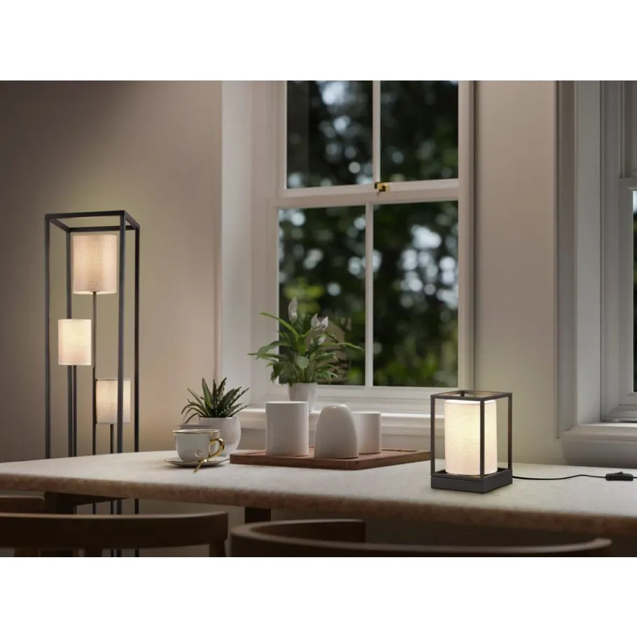 Sterke uitstraling, zachte gloed! De lampen uit de Ross-serie zijn verpakt in warme geweven stoffen om een gezellige uitstraling te creëren, die een gevoel van rust uitstraalt binnen je eigen vier muren. In de hal of woonkamer ontvouwt de drielichts vloerlamp haar sierlijke effect als decoratief element en wordt ze een blikvanger in elke kamer. De lamp kan ook eenvoudig met een voetschakelaar worden in- en uitgeschakeld. De eenvoudige vorm en neutrale kleurstelling van de drie lichttinten in verschillende natuurtinten onderstrepen de klassieke schoonheid van de ROSS-armatuur. Het matzwarte metalen frame geeft het ontwerp net dat beetje extra. Het gebruik van LED lichtbronnen wordt aanbevolen voor energiebesparende verlichting. Deze vormen een ideaal alternatief voor conventionele halogeenlichtbronnen en bieden een hoge lichtkwaliteit en energiebesparingen tot 80%. Met LED lichtbronnen profiteert u ook van een lange levensduur en een lage warmteontwikkeling, terwijl het milieu wordt beschermd.