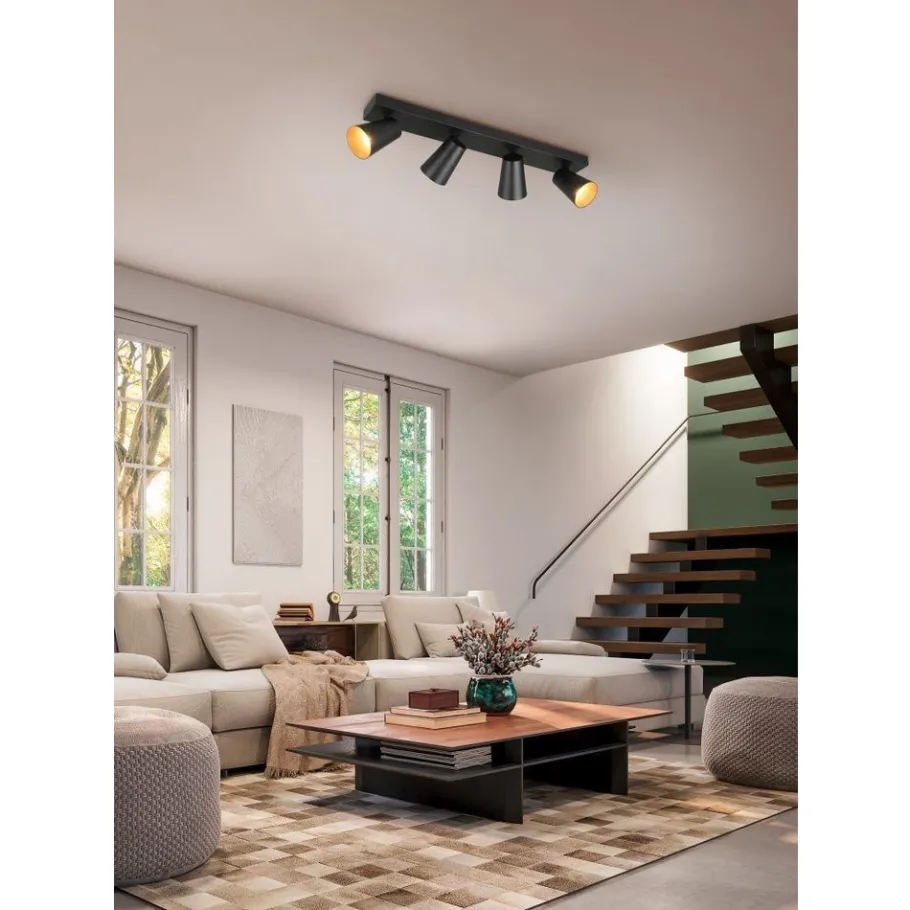 De lampen uit de SHARP-reeks worden gekenmerkt door hun moderne design en veelzijdigheid. Dankzij de draaibare spots is de vierlichts plafond- en wandlamp ideaal als aanvullende lichtbron in de keuken of in kleine kamers en geeft ze je huis een gezellige sfeer. De stijlvolle matzwarte kleur van de armatuur geeft de ruimte een geraffineerde uitstraling. De verwisselbare afdekkingen in zwart en goud bieden ook een flexibel samenspel met het licht. Het gebruik van LED lichtbronnen wordt aanbevolen voor energiebesparende verlichting. Deze vormen een ideaal alternatief voor conventionele halogeenlichtbronnen en bieden een hoge lichtkwaliteit en energiebesparingen tot 80%. Met LED lichtbronnen profiteert u ook van een lange levensduur en een lage warmteontwikkeling, terwijl het milieu wordt beschermd.